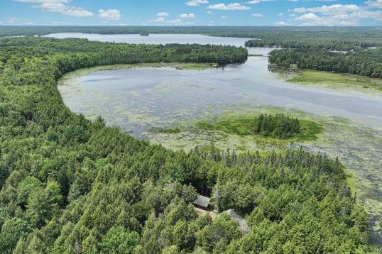 Welcome to this stunning custom hand-scribed log home, situated on 3.42 acres on a point leading to Big Lake of the Three Lakes Chain. Surrounded by state land, this property offers a peaceful setting that is hard to beat. With over 3, 900 square feet of well designed living space, this home features a main-level primary suite, a kitchen adorned with custom cabinetry and gourmet range, two-story living room, laundry area and another Bedroom and bath. Upstairs are two large lofts perfect for extra sleeping connected by a catwalk! The finished lower-level walkout provides space for guests and features a bedroom, bathroom and rec room plus tons of storage. Enjoy the tranquility of the three-season room and the expansive deck overlooking the 790 ft of shoreline and the private wooded lot.