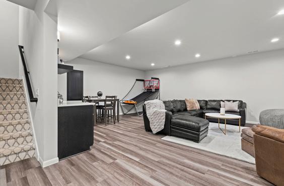• Lower level: theater room, 4K projector, 120” screen, full bar w/ Rustic Hickory cabinets