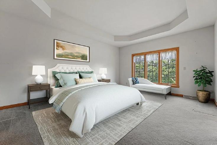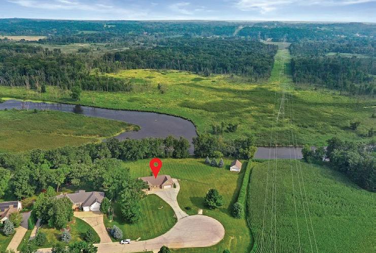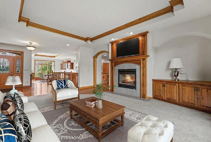Luxurious custom-built home tucked away on a quiet cul-de-sac in beautiful Richfield. This 4-bed, 4-bath home features high-end finishes and thoughtful details throughout, including a gourmet kitchen with Italian granite, Wolf® cooktop, custom cabinetry, and prep sink. The bright Hearth Room features a vaulted ceiling, skylights, & gas fireplace, while the 3-season room is perfect for enjoying the outdoors in comfort. Enjoy soaring 12’ ceilings in the Great Room, formal dining with Brazilian hardwood floors and maple inlay, and a private office with coffered ceilings. The spacious primary suite includes dual walk-in closets, and a spa-like bath with whirlpool tub & walk-in shower. Other features include a large laundry center, and 3.5-car garage with Modine® heater and hot/cold washdown station.
