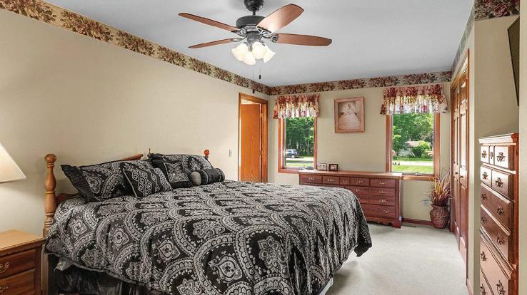 WATERFRONT w/a HUGE extra garage & very spacious house! WOW! Relax on 3.1 acres w/120’ frontage on Bullhead Lake, a no-wake lake w/67-acres & known for walleyes, panfish & perch! Walk-out, 2-story w/over 3400SF of living, has awesome features you will want in a waterfront escape! Large 2-story foyer, spacious living rm w/stone-gas fireplace, dining are w/bump out, very spacious kitchen w/SS appliances & floorceiling cabinets. Half bath & 1st-floor laundry rm by the ball hall to heated & insulated over 2.5 car garage.