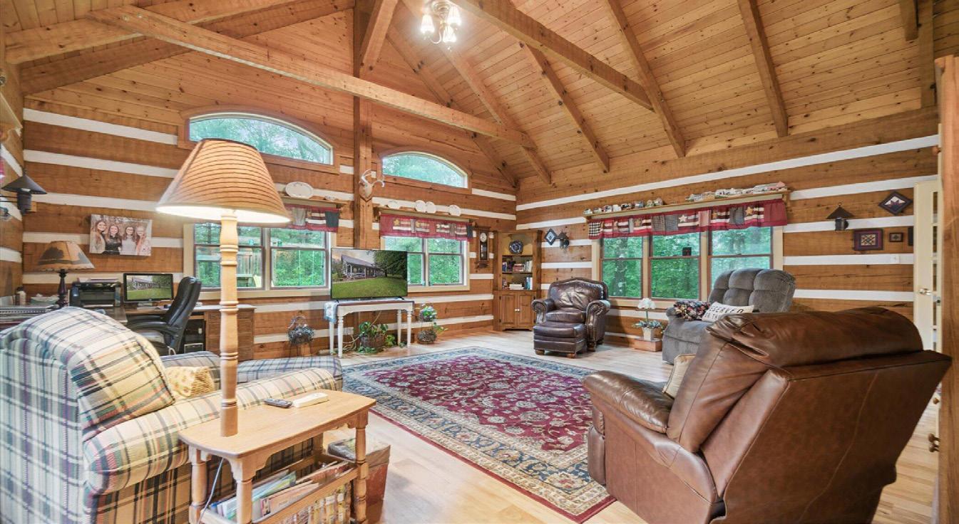Tucked away on 32 pristine, wooded acres, this exquisite log home offers the ultimate escape for nature lovers. Surrounded by towering trees, a tranquil pond, and abundant wildlife, the property exudes peace and privacy at every turn. Inside, vaulted ceilings and a stunning stone fireplace create a warm, inviting atmosphere, while thoughtful updates—including a new septic system and modern furnace—provide peace of mind. Two covered porches, complete with a porch swing, offer perfect spots to relax and savor the serene surroundings. An outbuilding adds versatile space for storage or hobbies, enhancing the home’s functionality without disrupting its natural charm. Every detail of this retreat reflects a harmony between rustic elegance and everyday comfort, making it a truly special property ready for your next adventure.