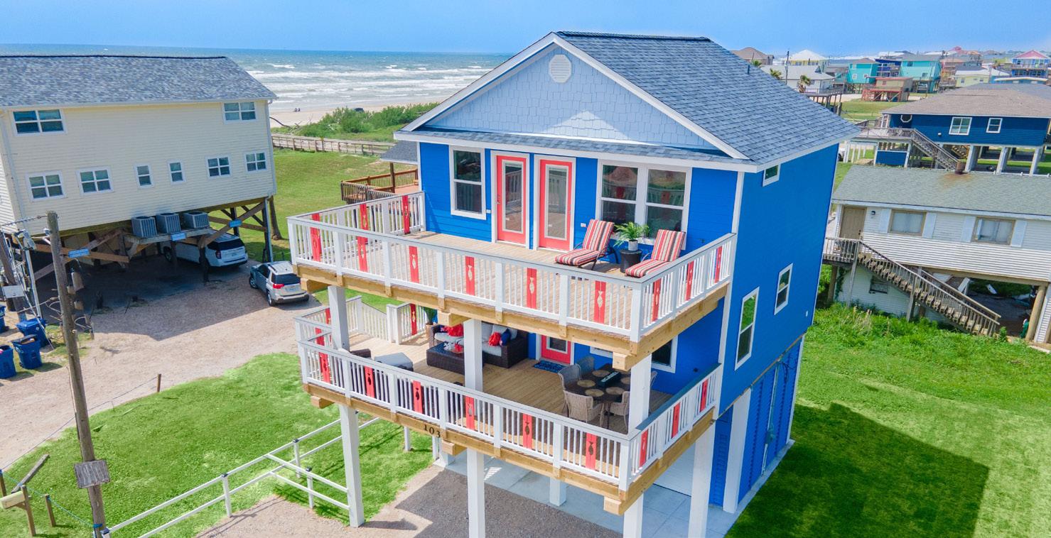 GORGEOUS 4-BEDROOM HOME IN BEAUTIFUL BEACHSIDE GALVESTON. Spacious open floor plan has over 2600 square feet. En-suite bedroom on the main floor & 3 additional bedrooms upstairs including a grand primary suite with sitting area, gas-log fireplace & private deck with Gulf views. Home has 3 additional decks with Gulf views for plenty of outdoor entertaining. Existing elevator shaft from ground floor to top floor. Seller updates include: roof replacement (2017); exterior paint and trim (2017); plantation shutters (2017); updated HVAC condensers (2019); landscape and hardscape including bricked double driveway (2022). Home is currently a vacation rental - sold furnished & turnkey ready for you to enjoy all year long!