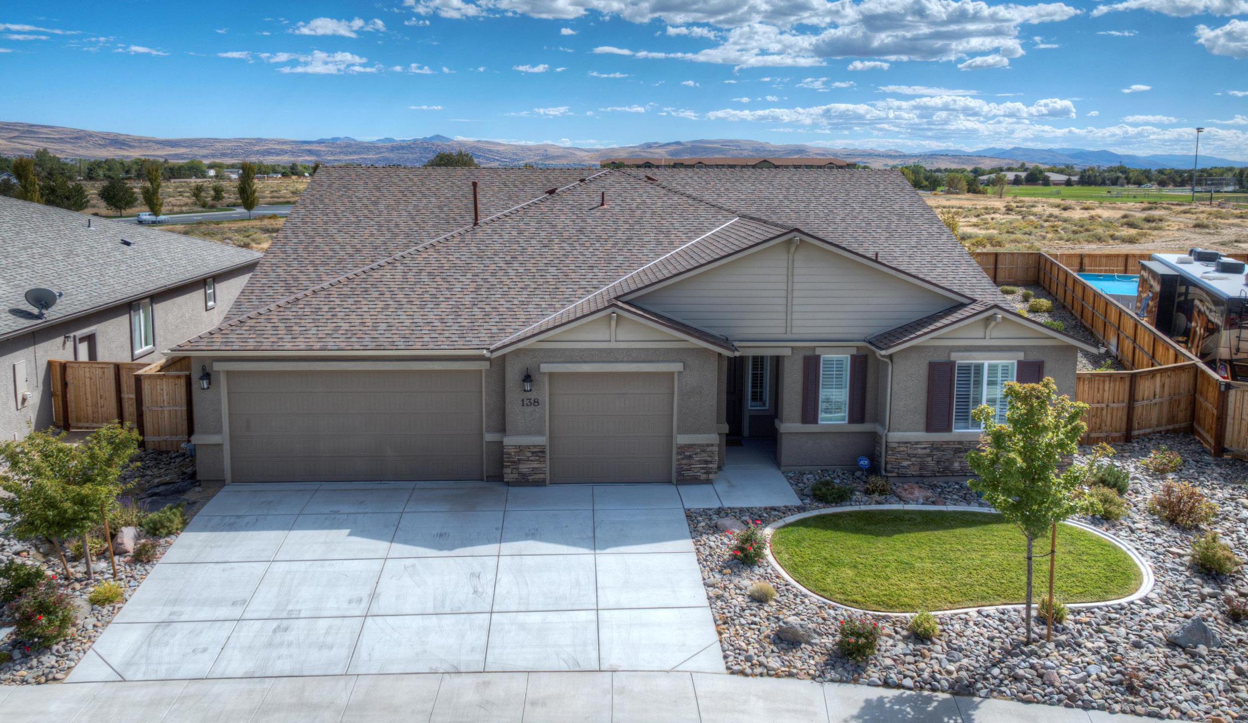 Relaxed comfort and luxury living. Relax on your spacious paver patio with expansive panoramic views in every direction, protected from afternoon sun and wind! Pavers extend around the house to the front gate and driveway. Entertain in the open concept great room featuring: fireplace and full wet bar wall of cabinetry. Kitchen features a large island, upgraded appliances and quartz counters, well planned cabinets with pull-outs and pantry, while dining room is graced with a picture window that looks like a painting! Boasting White Oak hardwood floors. Spoil your guests with two private bedrooms each with ensuite bathroom. The main suite enjoys its own privacy on the opposite side of the house with the same panoramic views. Oversize bathroom features two vanities, soaking tub and walk-in shower. Extra closets throughout the home. Built in 2021 with clean contemporary lines and “barn door” accents. Like new, barely lived in! Easy access from Route 80 gets you “home” in mere minutes with no tiresome roundabouts! Close to Reno-Tahoe amenities, airport and sports. 2-10 HOME WARRANTY. Refrigerator in kitchen, wine fridge, washer, dryer, and TVs can be purchased separately. The security system is portable and will not be transferring with the home. MLS# 220014350 FEEL LIKE YOU ARE LIVING AT A RESORT!
