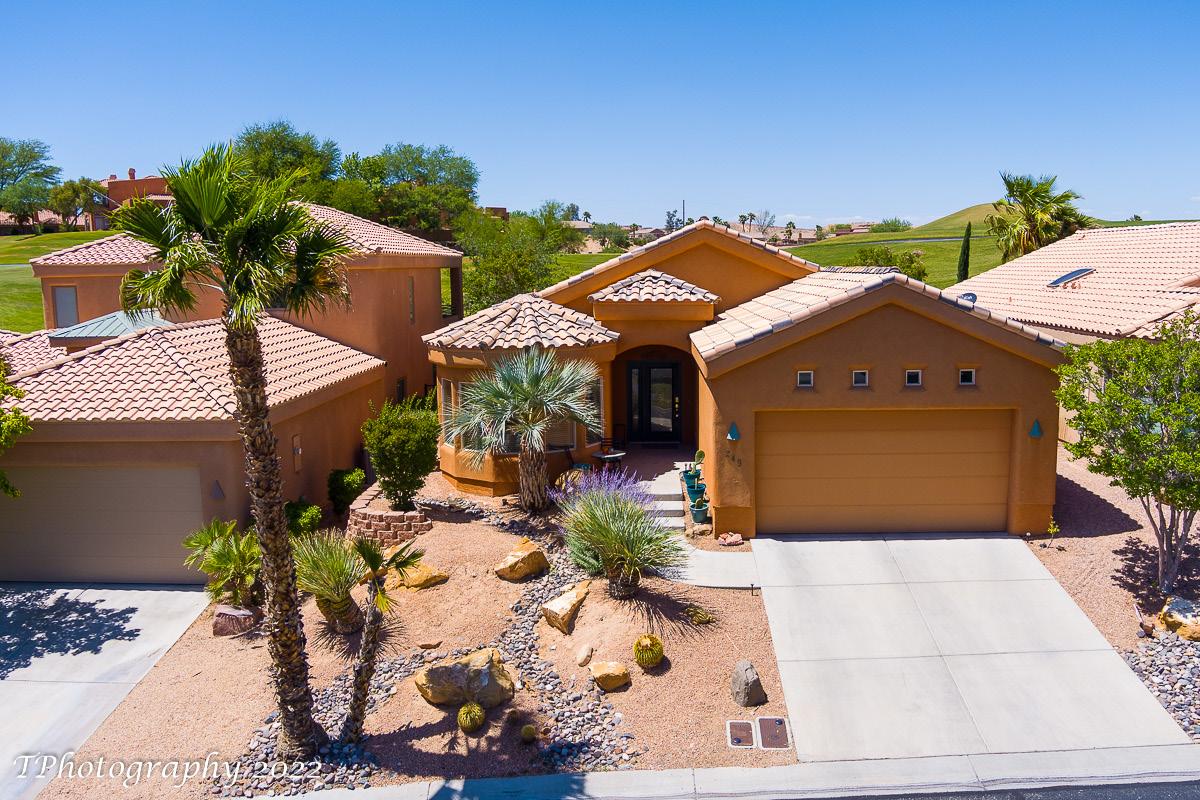 Views in every direction & pride of ownership! This private, custom, 3,860 sq ft estate on a private .77-acre lot - one of the highest points in Boulder City. 5 beds +loft, 3 baths, an 850 sq ft, 23-ft-high atrium w/ fountain, mature Ficus, & tropical plants providing interior temps 10 - 20 degrees cooler than exterior. Triple pane, thermal, steel beam framed 6-ft windows give 270-degree views of Boulder City, El Dorado Valley & Black Mountains. The owner, who is also architect & builder, used sturdy 2x6 frame construction creating double 7.5” thick walls. Attention to detail has kept this home pristine to withstandthesouthwestwinds. The mature lawnprovidesshade w/ Cypress treesandfull irrigation. Yard is prepared for ADU/pool w/ plumbing & electrical. Finished 50-foot, attached, cooled, 30-amp w/ sewage disposal RV garage. Parking for 10 vehicles, boats, etc. w/ 10-minute drive to Lake Mead. Small town living w/ shopping, medical, entertainment, hiking and 30-minute drive to Las Vegas.