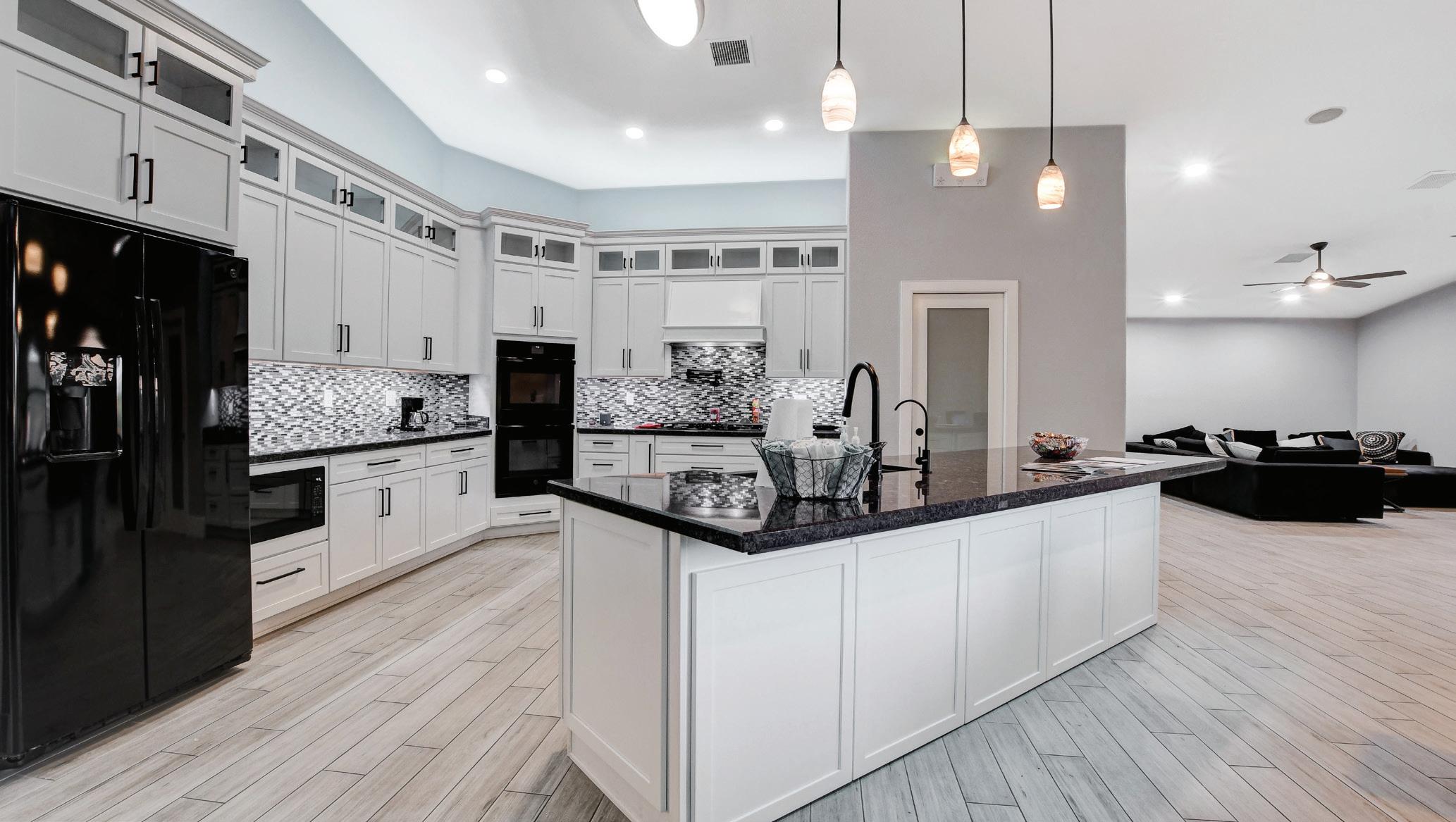 DON’T WAIT TO SEE! This high demand floorplan, previously a model home, offers 5 bedrooms, 2 are located at the front of the home with a bathroom which includes a walkin shower & 2 sink vanity. On the opposite side of the home near the Primary suite are 2 additional bedrooms with a full bath/shower combo also including a 2 sink vanity. The Extra wide hallways include two very large closets for additional storage. This home is gorgeous, highly upgraded, immaculate, turnkey, just like new and can be yours! Beautiful engineered hardwood in main areas, 19 ceramic tile in bath rms & laundry-new plush carpet in bdrms The Amazing Kitchen includes Upgraded Distressed-Shaker style cabinets with lower roll out shelving for easy access, the humongous island featuring gorgeous Barbados Granite”seats 7, large walkin pantry plus an endless amount of cabinets, stainless appliances included. 9’ ceilings, ceiling fans in all rooms, white vinyl shutters throughout, sink & upper cabinets in laundry, holiday light pkg, 50 yr comp roof.