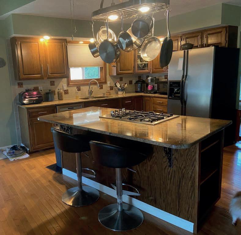 This well-maintained 1 1/2 story, open concept home is a must see! An addition/remodel in 1988 allowed for many updated features. Vaulted white-washed pine ceilings, oak flooring, new carpet in the bedrooms for comfort, tile in the baths for easy maintenance and main level laundry are a few. The kitchen features upgraded appliances, custom oak cabinets w/granite countertops and tile back splash. The upper loft area with sky light has unlimited uses and basement allows space for extra living and storage. Mature trees including a white-flowering snow crab plus two new aspens, several other beautiful bushes, plenty of perennials and two water features adorn this well manicured, corner lot.