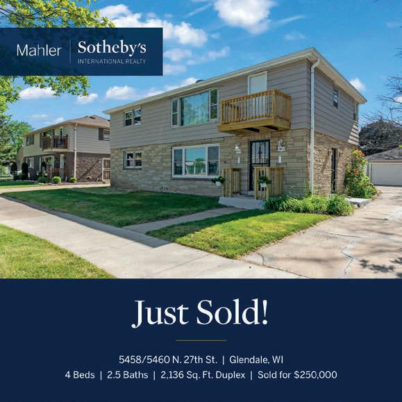 James Drakulich Lic#: 79130-94 | REALTOR® C: 414.248.6437 O: 414.964.3900 james.drakulich@cbrealty.com jamesdrakulich.com 1500 SUNSET DRIVE, ELM GROVE, WI 53122 $3,599,000 | 5 BEDS | 9 BATHS | 13,598 SQ FT This quintessential English Manor home built in 2009 is located in one of Milwaukee’s finest suburbs, Elm Grove. Within the winding roads of this premier community of Indian Hills lies a Castle Rock Limestone home, brimming with an exemplary show of refined finishes, admirable quality, and high style. This home will take your breath away and exceed your every design and aesthetic desire with its impeccable craftsmanship, custom millwork, and unique features throughout. 6000 N. Port Washington Road Glendale, WI 53217 Kristin Altendorf REALTOR® C: 414.520.3673 O: 414.964.3900 kristin.altendorf@cbexchange.com 6