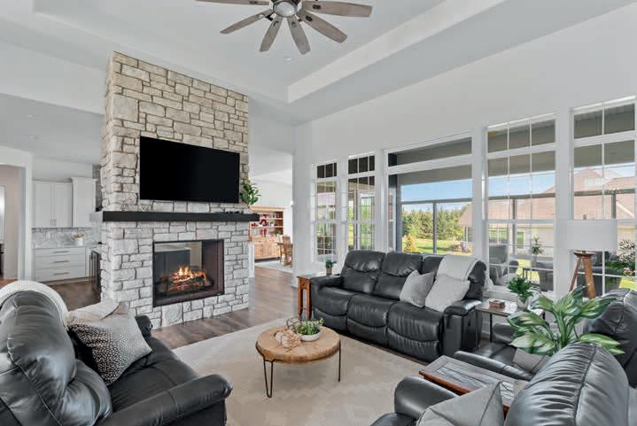 4 BEDS | 4 BATHS | 4,053 SQ FT | OFFERED AT $1,134,950. A Country Club feel, this great neighborhood offers pool, b-ball court, cookout area and trails. This breathtakingly beautiful nearly new custom home in Windrush feels like a model as it was just built in 2021. You’ll be delighted with all the natural light and stylish elements in every room in this open concept layout designed for entertaining. The gourmet kitchen features an expansive island, two-sided fireplace and large eating area. The primary bedroom is a welcome retreat with a spa-like ensuite and private access to the home’s 3 season room. The lower level expands your living space expertly with full size windows, a kitchen with island and large multi-purpose area to host a big crew. Access to the garage with a direct staircase makes stocking the LL fridge a breeze. No need to wait to build your dream home, all you desire is already ready and waiting for you in this luxury home located in the Arrowhead School District.