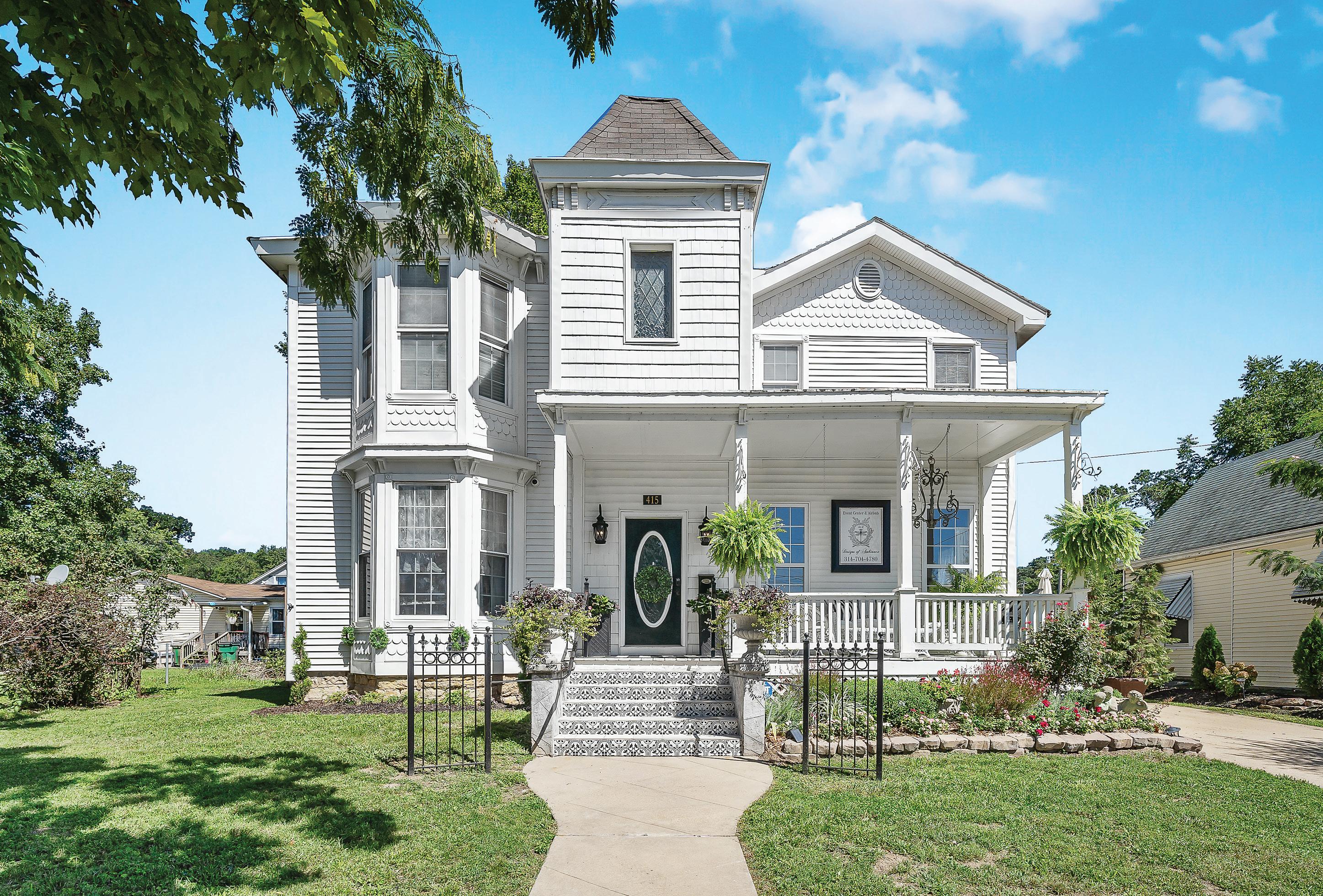 Country home in town. This 1900 home has been stripped to the studs, enlarged and wrapped with a fabulous porch. The home has luxury vinyl flooring throughout which makes it family and pet friendly. Floorplan is fairly open and unexpected in a home this age. Main floor primary bedroom with large en-suite bath. 3 bedrooms upstairs (one is non-conforming without a closet). XL bathroom and second family room also upstairs. Large bedrooms. Oversize 24×30 attached garage has 220 for power equipment and is large enough for full sized vehicles and workspace. There is concrete parking in front and behind the house. Full RV hookups with power/water/sewer are so convenient! The huge wrap around porch is meant for entertaining or just enjoying a cup of coffee and a book. All of this on a corner lot where the seller has built native stone retaining walls along the edges. The home sits on a combination of crawl space and basement celler. Great for storage or storms.