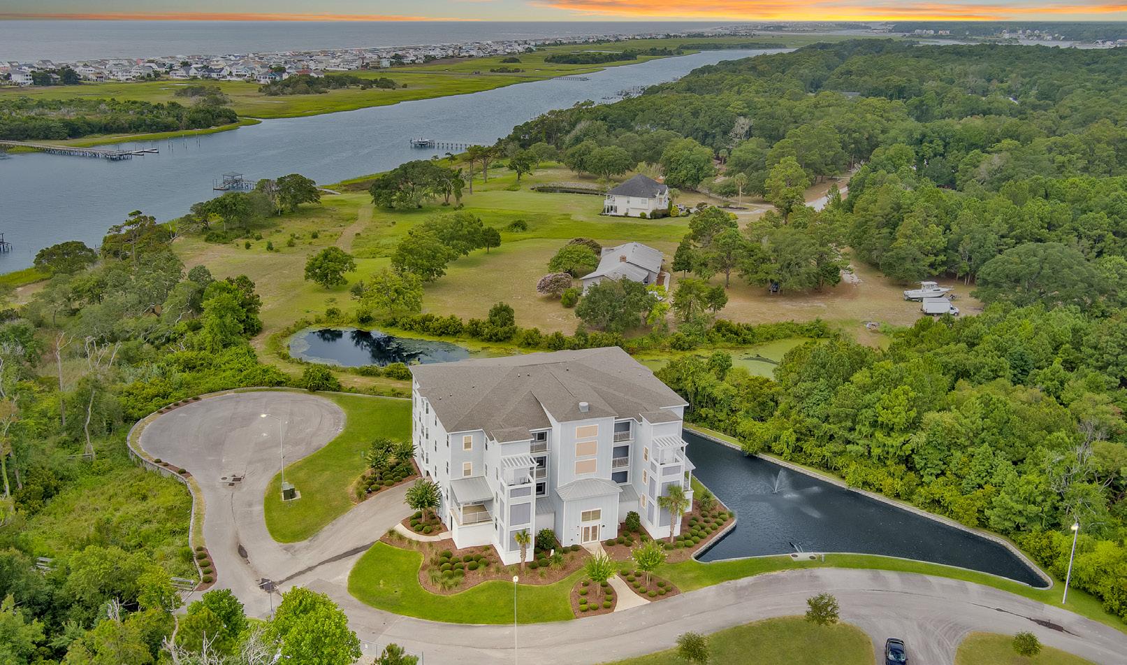 Condo living never felt more private and serene than it does in this waterfront, top floor, corner unit in the gated community of Dolphin Shores. With Holden Beach within sight and the waters that lead to it acting as your backyard, your balcony will soon become your serenity. The Intracoastal Waterway, which separates the mainland from the island of Holden Beach, hosts the impressive waterfront amenities including community pier, day dock, zero-entry pool, and gorgeous clubhouse. Pull into the covered parking area and head to the lobby for a quick ride on the elevator to the fully furnished end unit #9 with panoramic views of the Intracoastal Waterway from the back balcony, the relaxing pond to the side, and of course the beauty of Holden Beach as all of its backdrop. With 1,768 square feet of open, waterfront, move in ready living space makes this property an exceptional find across the Brunswick Islands. With all the luxuries of coastal, low maintenance, no worry living just steps from your front door, and the sands of Holden Beach only 10 minutes away, you can make your dream of owning a getaway on the North Carolina coast a reality. The crown molding, wide baseboards, and hardwood flooring greet you and guide you into the bright and open living area of this thoughtful floor plan. Because this is the top floor, corner unit, soft natural light uniquely fills every room through the many windows throughout the living, dining, kitchen, and bedrooms. This condo comes fully furnished and are all three bedrooms are plenty spacious for family or friends, each featuring their own private bathrooms with granite topped vanities and tile flooring. Short-term rentals are also allowed in Dolphin Shores. So if you are not here enjoying your condo full time, why not try and make a little rental money? Do not worry, Vacasa can handle all of your rental appointments! Offered at $599,000