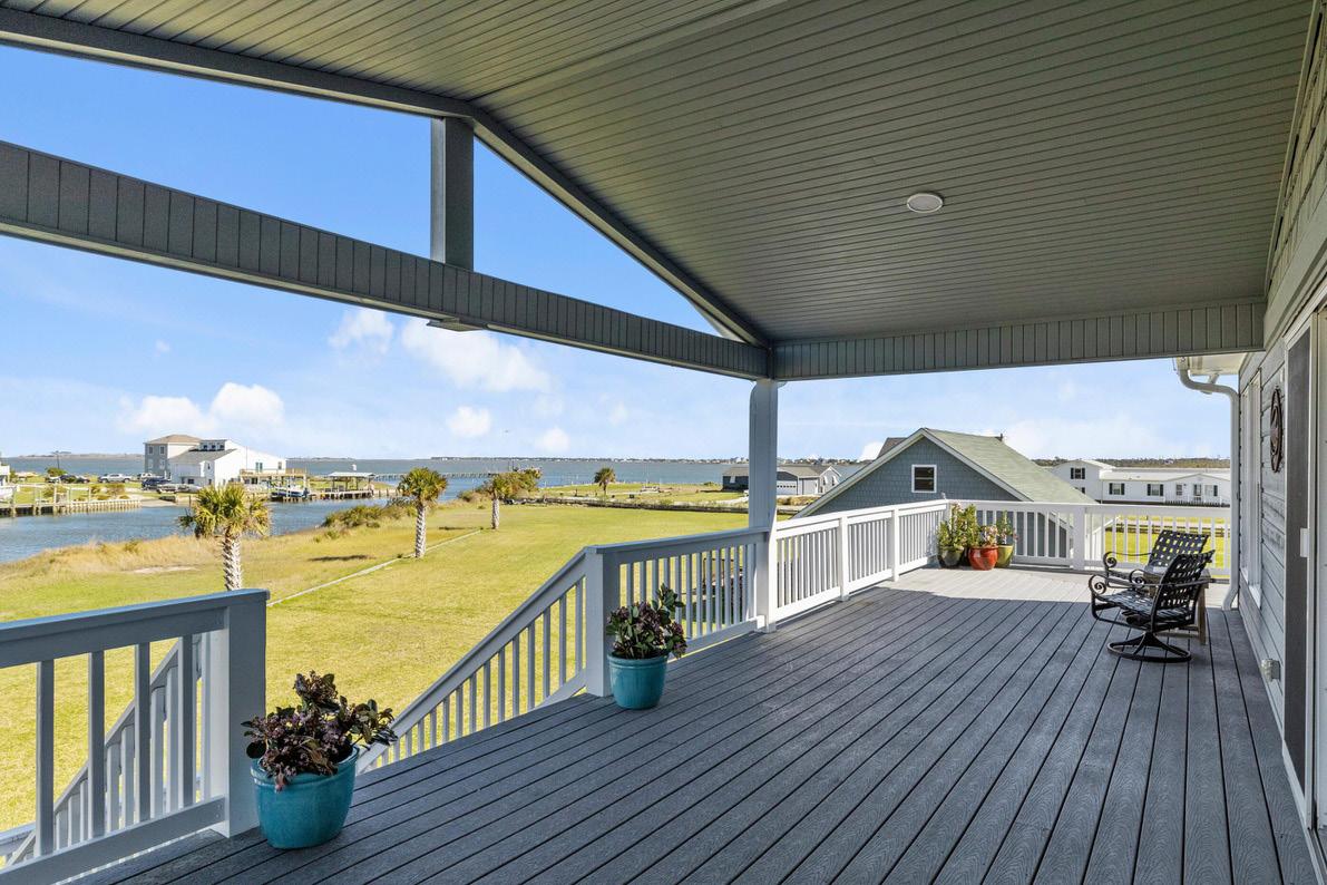 Soundfront on the south end of WB-does it get any better?! Rarely available, this coveted Water St location is one that you’ll never want to leave. Premier location for anyone needing dockage for a larger boat or anyone who simply loves an immaculate home and gorgeous waterfront. Just a few houses from the ocean, both ocean and sound are at your fingertips. The 3500 +/- home lives larger, with full 2-car garage, 3 driveway spaces, and gracious storage for all of your beach toys. Impeccably built in 2004 and renovated to the studs in 2019, the home was designed by David Lisle and built by Gaines & Associates. Exceptional features include Eagle TDL Low-E windows and doors, Cat-5 wiring, generator hook-up, all new Carrier HVAC, standing seam metal and copper roofing, copper gutters, Massarunduba Brazilian decking, and 2021 pier/dock with new composite bulkhead. You won’t need to touch a thing! The kitchen is light, bright, and beautifully laid out, featuring custom cabinetry, quartz tops, and welcoming gathering spaces adjacent. Take your choice between a spacious master suite on the primary level and another master suite on the second level, featuring gorgeous sound views. All five bedrooms feature en-suite baths. You will find the perfect respite in the third level theater room which features surround sound, wet bar, half bath, charming pitched wooden ceiling, and a gorgeous porch with some of the best views on the island. The position of the lot provides a wide open view up Banks Channel to the north, across the spoil island to the west, and south to the inlet. The dock features a spacious gazebo with copper roof, fish cleaning station, a 60’ length on one side, 13klb lift on the other with room for two additional smaller boats, and jetski lift. The quaint neighborhood feel on this end of WB can’t be replicated. Never rented, the property is impeccable and ready for your family-make the WB dream lifestyle yours today!