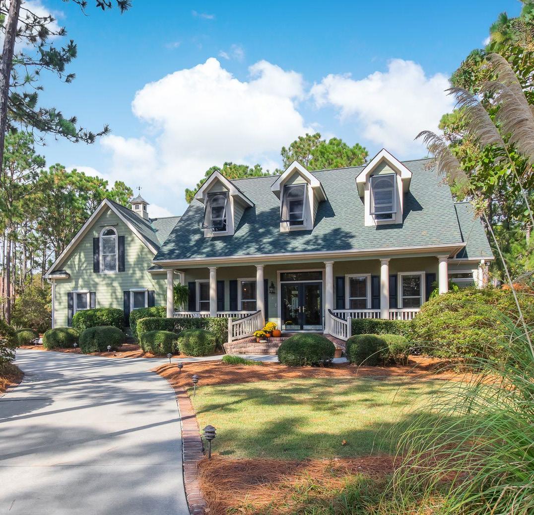 long summers and sweater weather winters, walks on the beach, and endless days of sunshine, then you belong on the front porch of this lovely low country home in St James Plantation, North Carolina. This three bedroom, three bath home offers such upgrades as a two-story foyer and vaulted ceiling family room, plantation shutters, crown molding, two gas fireplaces, a trey ceiling in the first-floor owner suite, a designated home office, two year ‘round sun rooms, a formal dining room and a semi-circular driveway so you don’t ever need to worry about backing onto a street. The drought resistant yard blooms with azaleas in the spring, crepe myrtles in the summer, and camellias in late winter. And then, of course there are the beautiful southern pines and holly bushes…