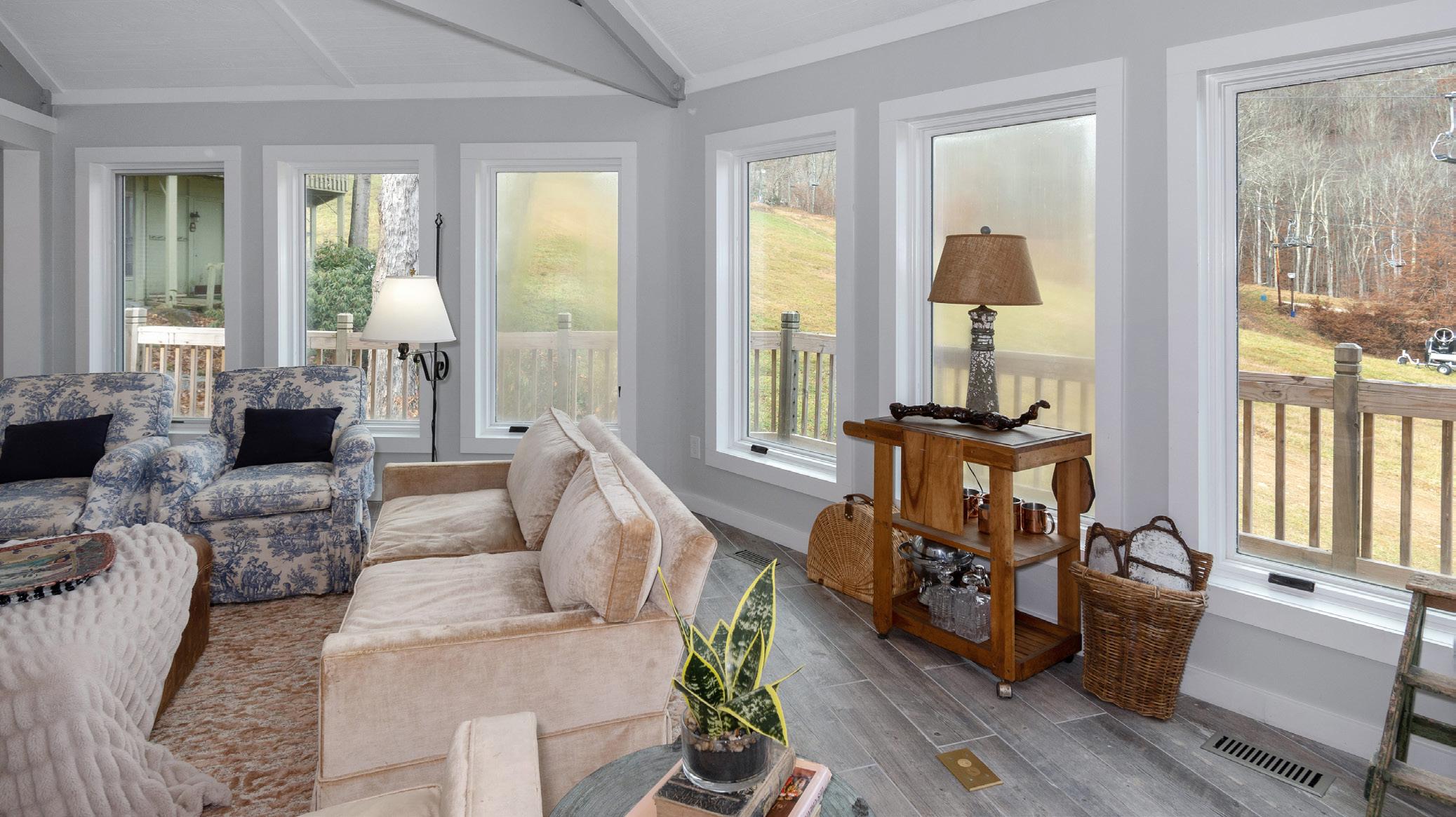 Right on time for Ski/Snowboard season! This ski-in-ski-out 4 bedroom 3 full bath round “Bark House” is right on the slopes of Sugar Mountain Resort. Upstairs features 2 bedrooms and 2 fully renovated baths. Beautiful ceramic tile floors throughout the home. New kitchen with butcher block countertops, and newer appliances. The main level is surrounded by windows..great to watch the action on the slopes and take in the natural beauty. The staircase was re-designed and leads to 2 bedrooms and a full walk-in tile shower and a small living space. Great spot to come in off the slopes and remove gear. There is a great deck and side porch to enjoy both summer and winter life. The home was completely renovated with a new roof, new central air/heat, tankless water heater, kitchen, built the retaining wall to add parking and completely re-designed the interior. Amazing rental investment for all 4 seasons with downhill mountain biking, hiking, festivals, scenic lifts, and all the High Country has to offer. OFFERED AT $795,000 | 4 BED | 3 BATH | 1,135 SQ FT