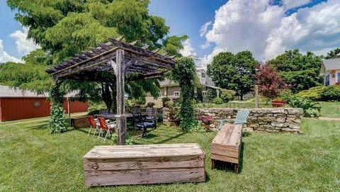 Dining Al Fresco in the vine wrapped Pergola with friends and family overlooking rolling fields. Upon entering 1850’s farmhouse on 60+ acres with Grand Entry & wrapping staircase to the beautiful dining room that leads to the Great Room overlooking the expansive deck and farmland you know you are home. The kitchen with large Island & Quartz countertops is where everyone will spend their time. There is a separate bar w/ wine fridge. The wine cellar (16x14) is in the basement. The floor plan is flexible with a Dining Room with built-ins, an office with a gas fireplace and 1/2 bath plus a library & 2nd gas fireplace, first floor bedroom and beautiful first floor bath plus a bright laundry room. Down the hall is a Sunroom including a hot tub and plenty of room for plants. Two staircases lead to a large master bedroom, custom walk in closet & master bath with historic workbench converted to a double sink vanity a 3rd bedroom and an add’l office / study.