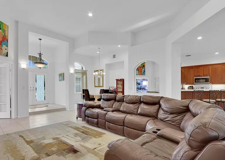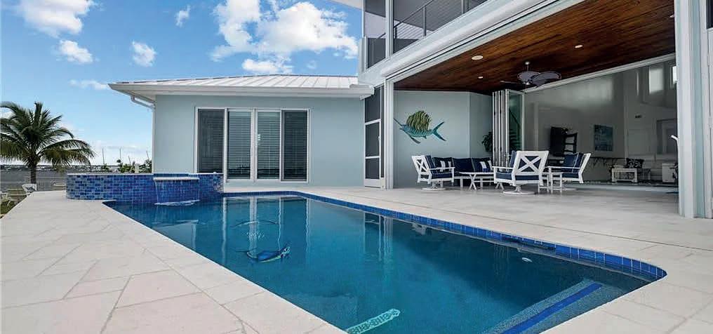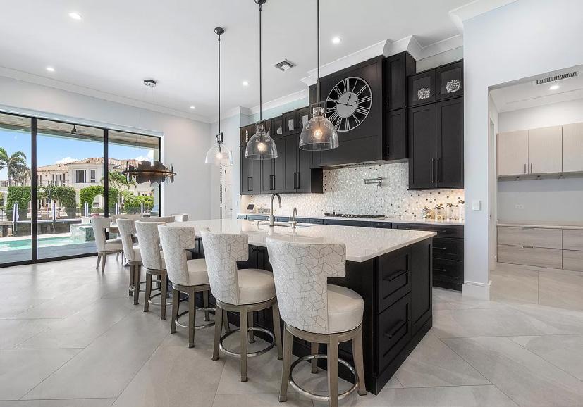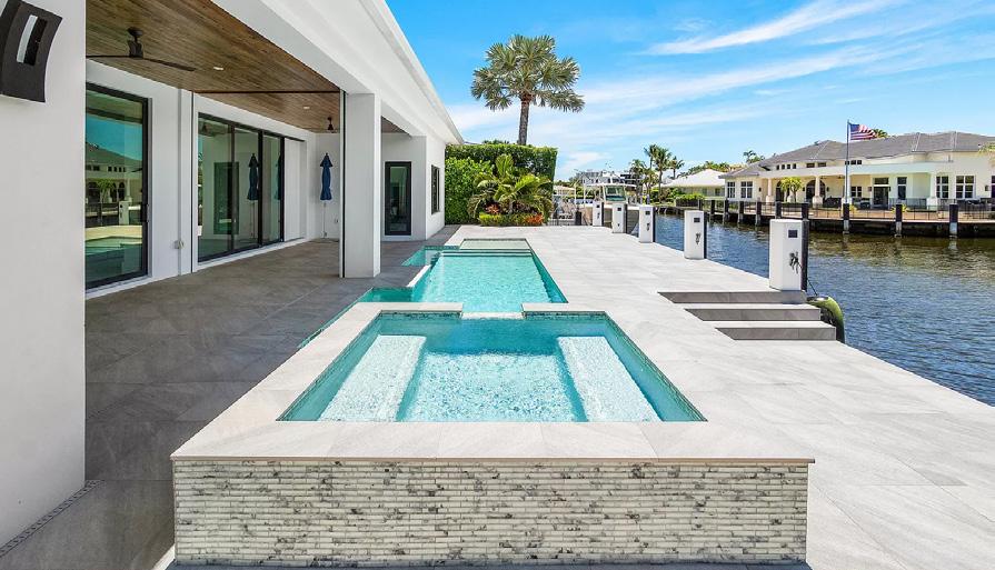 Outside, the Florida lifestyle unfolds before you with breathtaking water views from your own backyard. Take a dip in the pool, relax in the spa, or enjoy the spacious green areas. With direct access to the water, your private dock offers endless possibilities, whether it’s boating, jet skiing, or paddleboarding.