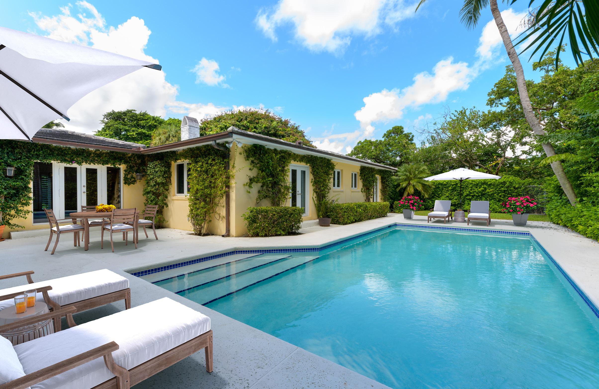 House with separate guest house in prime PBCE location. The 1.2 acre lot is landscaped for privacy. Large screened patio and kidney shaped pool. The main house features 3 bedrooms plus a den with volume ceilings. The attached guest house has a spacious living area, kitchen plus 2 bedrooms and a bath. Double French glass entry doors lead to the light and bright open floor plan. Large circular driveway. Whole house generator and complete accordion shutters.