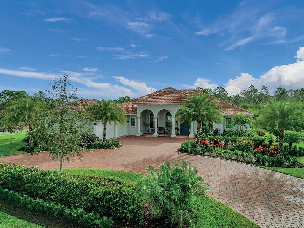 Elegant 5 bedroom, 7 bath luxury home in the coveted Palm Beach Polo Club neighborhood of Blue Cypress. Optimally sited on a 1/3 acre double lot with wide open, unobstructed views of the fairways. Perfect for indoor-outdoor entertaining with gourmet kitchen, media room, office, backyard oasis with pool/spa, outdoor kitchen. This beautiful 6,000 sf home features a 3-car garage, impact-resistant windows, elevator, and home generator, all in a gated community.