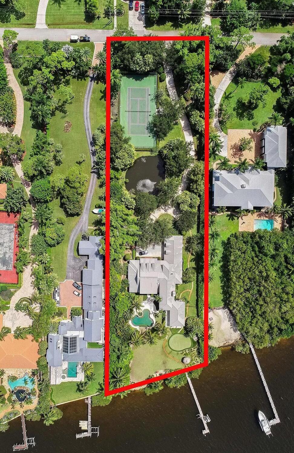 West style estate situated on the Loxahatchee River in Jupiter's premier neighborhood, Pennock Point. Less than a 5 minute boat ride to some of the best restaurants and offshore fishing. Nestled on a 1.9+ acres, this riverfront home site boasts 165' of River-frontage and 540' of lot depth. This home was built in 2001 by Keating Moore Construction, a Palm Beach high-end builder. Its spacious layout offers 5 bedrooms and 2 den/office rooms, 6 full baths plus 1 half bath, and a 3-car garage. 10097 total square feet, with 6455 being under air. Infinity edge pool/ spa with rock waterfall and koi pond, authentic tiki table with teak benches, 800 sq' synthetic putting green, regulation tennis court with stadium lighting/ cabana and Dock with dual jet ski lifts.