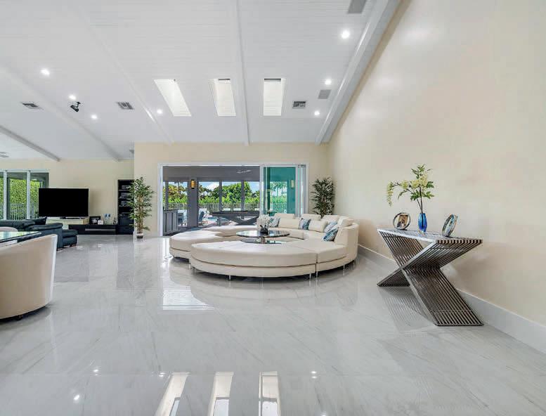 This home is a showcase of exceptional features, including all impact windows and doors, a brand-new raised seawall leveling the backyard, and a new dock that can accommodate an 80-foot-plus boat. The property is equipped with two 24,000-pound boat lifts, a refinished saltwater pool