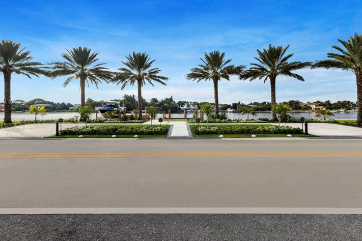 Stunning Lakefront 6-bedroom, 7.2-bath home built in 2018. Gorgeous blue wide water views from all primary rooms. Beautiful courtyard entryway leads to oversized living room with fireplace. Gourmet chef’s kitchen with island overlooks family room. Highlights include library, elevator, home gym, full staff kitchen, and 4-car garage. Gorgeous tropical landscaping. Pool, spa, and loggia with fireplace overlooks Intracoastal. Dock with boat lift and seating area.