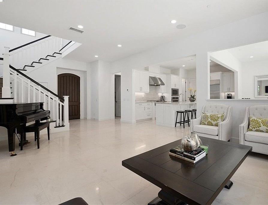 Ideally situated within the serene Irvine gated community of The Groves at Orchard Hills, this exquisite and newly constructed home built in 2021 has approximately 2700 SF of living space, sitting on a 4141 SF premium corner lot. Natural light and breeze flood the home, which boasts 10-foot ceilings, and luxurious modern amenities throughout. The family room and conservatory dining room open to the spacious gourmet kitchen complemented by white wood shaker cabinets, Tahitian Cream quartzite countertops and backsplash. The kitchen island is perfect for entertaining and large gatherings and comes equipped with top-of-the-line KitchenAid Stainless Steel appliances. Beautiful 24”x24” limestone flooring covers most of the main floor and upstairs bathrooms, while the elegant wood-paneled staircase leads to the upstairs loft, bedrooms and closets. The spacious primary suite has custombuilt-in cabinets, a large walk-in closet, dual-sink vanity and separate bathtub and shower are beautifully upgraded with porcelain tile which perfectly complement the quartz countertops and tub.