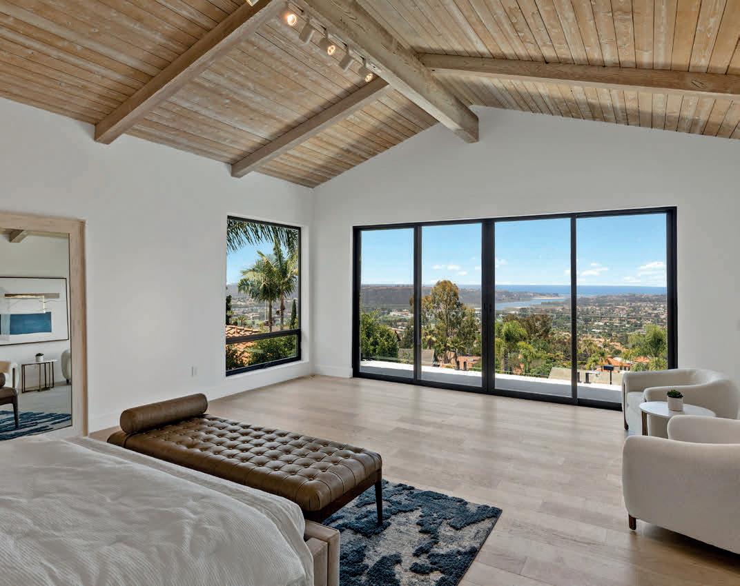 Recently remodeled with ultra high end finishes, but maintaining the charm of a home from a bygone era, 7117 Obelisco Circle transcends BEAUTY & ELEGANCE. Perched at the top of the La Costa, this home has PANORAMIC ocean and lagoon views from every room of the home. The homes’ welcoming foyer is highlighted with a 6’ pivoted front door. As the door opens, one is taken back by the stunning views and open floor plan with dramatic vaulted wood ceilings. European wide plank hardwood adorns each level, with a sunken living room to enjoy the setting, primary suite off the main level, three additional bedrooms one en-suite with decks off each room to capture the stunning view. The double island kitchen has been designed with no feature overlooked, from the custom Italian cabinetry which boasts motorized and soft touch operability to the counters which are an back illuminated onyx. Multiple sinks with a boiling hot and soda faucet are placed to enhance the experience of the home. The integrated refuse bin is self-opening with a flick of the foot, adding