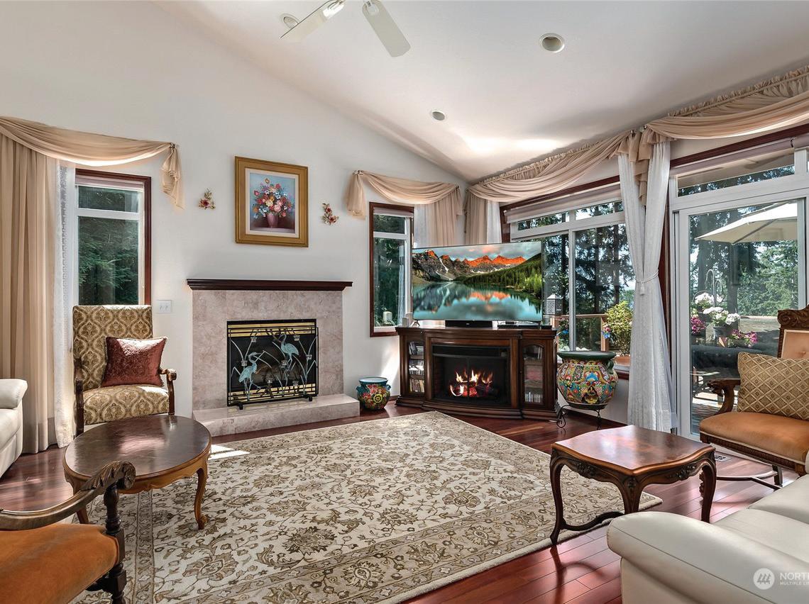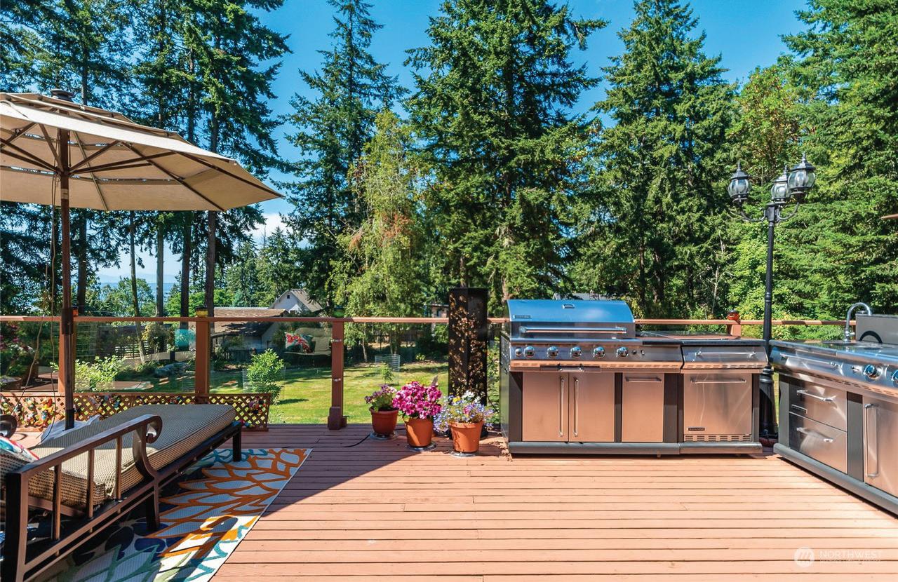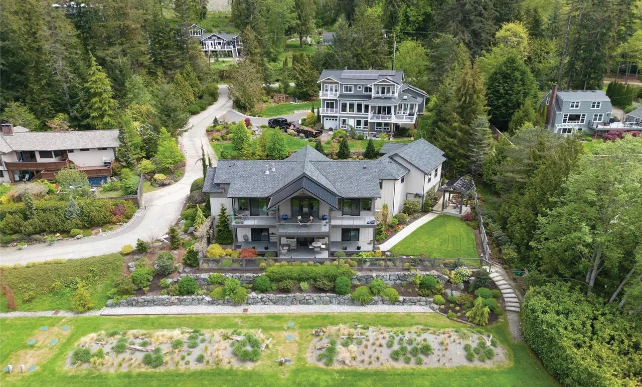 Stunning 330 degree panoramic water views from this 3027 sq ft treasure designed by FWC Architecture. Enjoy the beautifully framed views of Mt. Baker sunrises and the Olympic Mountains to the lights of Vancouver from this masterwork. Highest quality post and beam construction yields a soaring, contemporary, multilevel space for the kitchen, dining area and a great room with a large limestone faced gas fireplace. The living room with corner window opens to 1400 sq ft of covered stone patio, fire pits and sunken hot tub. Gourmet kitchen with pantry. Primary suite up frames magical views with office, sitting area, & spacious bathroom. Main floor bedroom w/ steam shower, day and Murphy beds, gas fireplace. Retreat to your natural sanctuary.