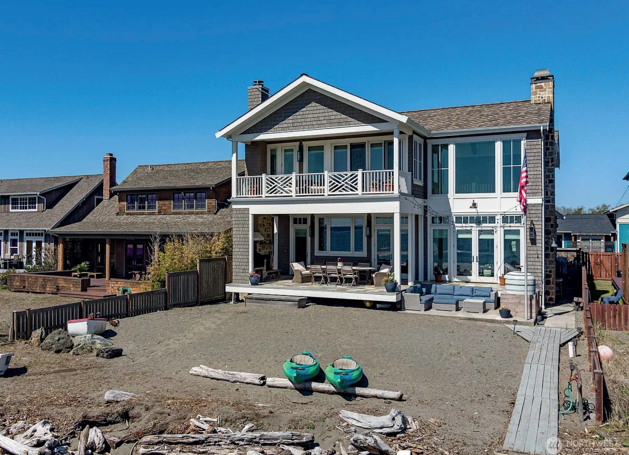 This stunning west-facing waterfront property showcases sunset views and an expansive 542 feet of shoreline. With over 3700 sq. ft., this 3 bed/3 bath private home features a main level primary suite and panoramic water vistas that will leave you in awe. Spend your days exploring the long beachfront or embark on a peaceful kayak adventure. Admire the views of ferries and the iconic Rosario Mansion, or simply unwind on the deck as the sun dips below the horizon. This remarkable home epitomizes the best of island living. Don’t miss this rare opportunity where serenity meets natural beauty. Complete with a wood shop and two detached carports, this property is truly exceptional.