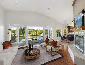 Magnificent signature west-facing waterfront estate -2 parcels totaling 146' of no-bank beachfront on Lk Sammamish. Tasteful, curated homes in a truly idyllic setting w/ a 5,093 SQ FT, 3 BR, 3.5 BA main home & 1,100 SQ FT, 1 BR, 1.75 BA guest house. Main home includes chef's island kitchen with Viking & SubZero, custom millwork, hdwds & stone. Elegant guest house includes a Wolf stove & NanaWall to lush grounds with fabulous stone outdoor entertaining area with huge fireplace perfect for enjoying rose colored sunsets. Fabulous beachfront with 2 docks in an amazing A+ mid-lake location at the end of a quiet dead-end lane for ultimate privacy. 23,436 SQ FT (.54 acre) with 2 garages (5 cars), 2 boat lifts & huge beach. Rare opportunity on Lake Sammamish!