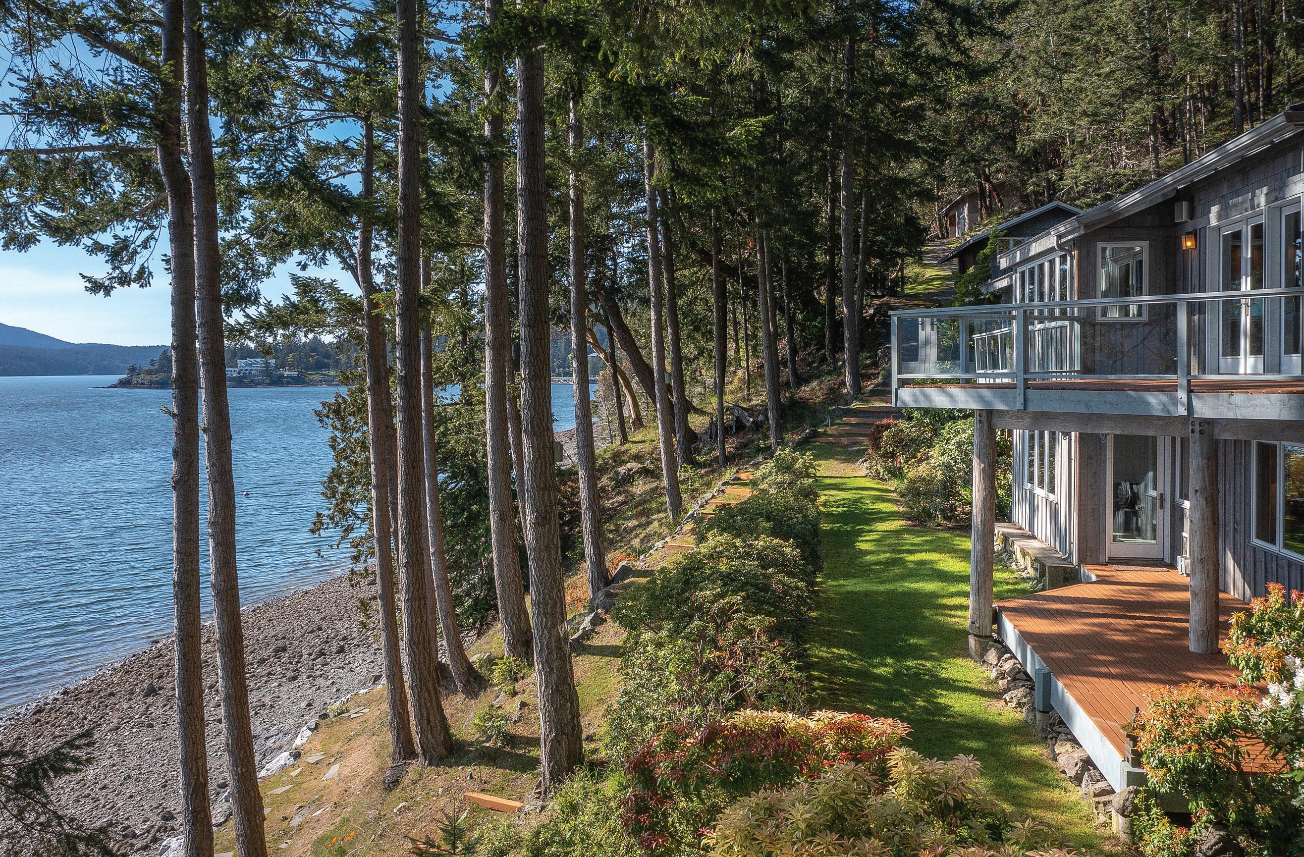 One Of The Most Spectacular Waterfront Properties In All The San Juan Islands! 2 Acre West Side Estate on a point; 900 ft medium-low bank waterfront; Breathtaking views of the Straits, Olympic Mountains, Canada, whales, marine traffic, sunsets, and the lights of Victoria; 3450 sf, 3 bed, 2.5 bath main home; Two 600 sf cottages with baths; 3-bedroom septic allows for in-house or detached office/bedrooms; 1248 sf garage-shop-exercise-office; treehouse; extensive landscaping; 2 fenced gardens; heated greenhouse; chicken run; high quality water de-sal plant with 30,000 gallons of storage; 20KW backup generator. Gift yourself the generational experience of this lease-hold property with 72 years remaining. MLS #1977734