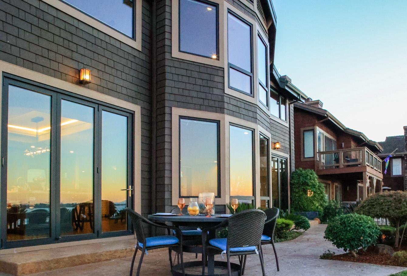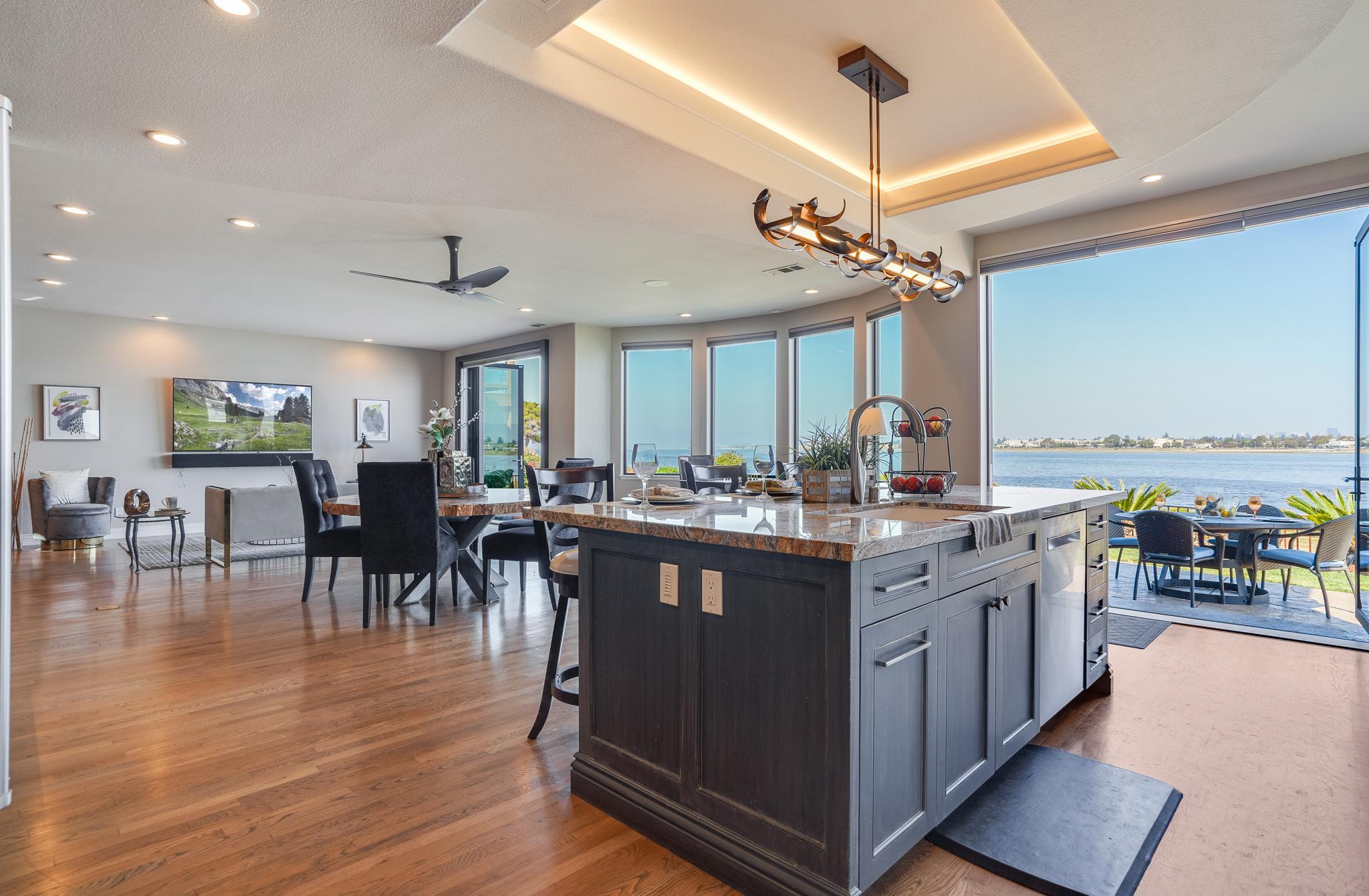 Breathtaking bay and SF skyline views from this exceptional bay front home that has undergone an extensive million-dollar stunning renovation. Elegant and exquisite details adorn this 4,003 sf Harbor Bay home with 5 bedrooms and 4.5 bathrooms. Enter through wide designer French doors to 20+ft vaulted ceilings that enhance this open and airy home. Gorgeous kitchen faces the water features built in wine fridge and a caterer’s station with exterior access. Large bay windows with accordion glass patio doors provide seamless indoor-outdoor living. Primary suite is heavenly with huge bay view windows, and custom closet. Primary bath is expansive with redesigned large shower, spa tub, rounded custom vanity with granite countertop, and separate water closet. Adjacent bedroom also has a bay view. There are 2 additional en suite bedrooms, one upstairs and one on the first floor with independent access. Meticulous landscaping done in the front, side and backyard. Multiple spaces to entertain.