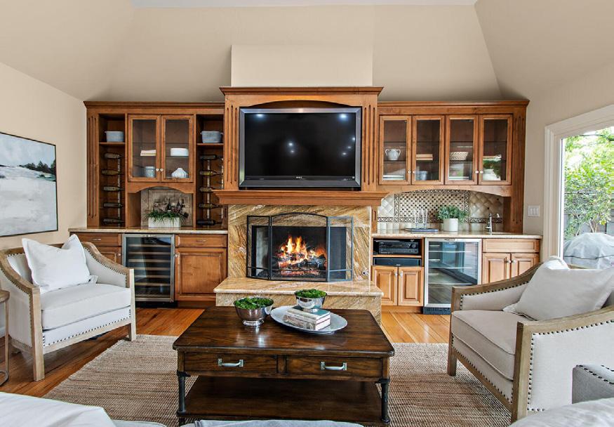 the ambience and the warmth provided by the homes fireplace along with a prewired speaker system for surround sound entertainment.