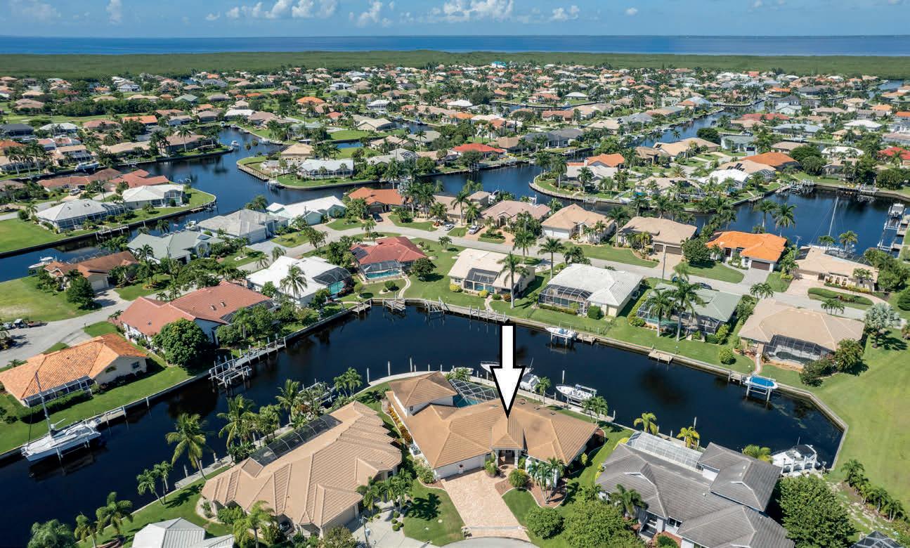 This Florida lifestyle is at its finest in this immaculate turnkey home. As you enter the home you will be amazed with view and the designer touches. The great room layout encompasses a spacious kitchen with a large center island and breakfast bar leading to the dining room overlooking the views of the state-of-the-art pool and spa in 2020. The lights at night are stunning. The split bedroom floor plan provides privacy for the large master suite with 2 walk-in closets and dual sinks in the bath. The 3 other bedrooms share the guest bathroom with entry to the pool area. For the best enjoyment of the Florida life, we have a large composite dock with water and electric and a 6K covered boat lift sitting on a 100’ wide freshwater canal leading to over 20 miles of navigable canals and lakes to enjoy fishing, kayaking, boating... or just relaxing under the impressive 15’ tiki hut enjoying the peaceful sounds of the fish jumping and birds singing in this fully fenced, private oasis! This neighborhood offers a quiet, country charm while being conveniently located to all the shopping and dining on the Pine Island corridor. New paint inside/out 2020, new carpets 2019/2020, New A/C 2021.