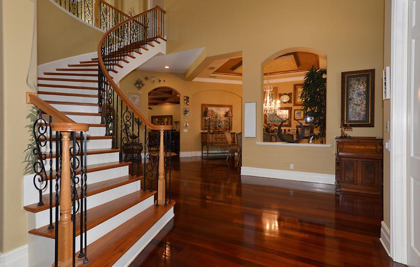 • Chef’s kitchen with gas and double ovens and wrap around breakfast bar