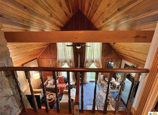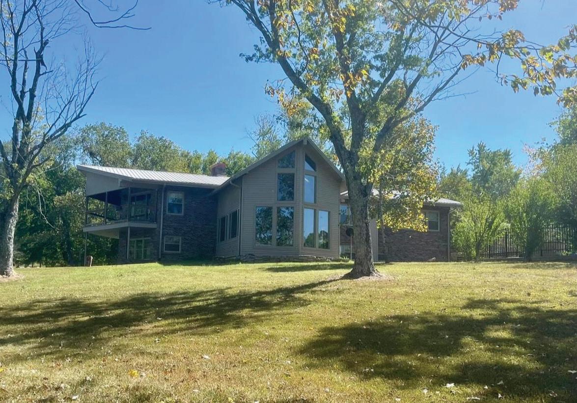 Stunningly beautiful is this custom designed and built home set on 113 acres. Enjoy the rolling land, the stocked pond/lake with a floating dock and gazebo, the swimming pool, and detached 3 car garage with a game room above and greenhouse on the first level. Step into the foyer of this home to incredibly high ceilings with an open concept layout. Fireplace highlights the center of the great room with the dining room, kitchen and a room with a bar for wine tasting or bourbon sipping. Kitchen has been newly renovated with Quartz countertops and all new stainless steel appliances. Completing the first floor is the primary bedroom with ensuite primary bathroom with beautiful tile shower, whirlpool tub and two separate vanity/sink areas, an office and a half bath. Upstairs boasts amazing views of the great room and 3 bedrooms and 2 baths. One of the bedrooms has a conical turret (witches hat) ceiling made of wood and a matching wood pattern on the floor-A MUST SEE!