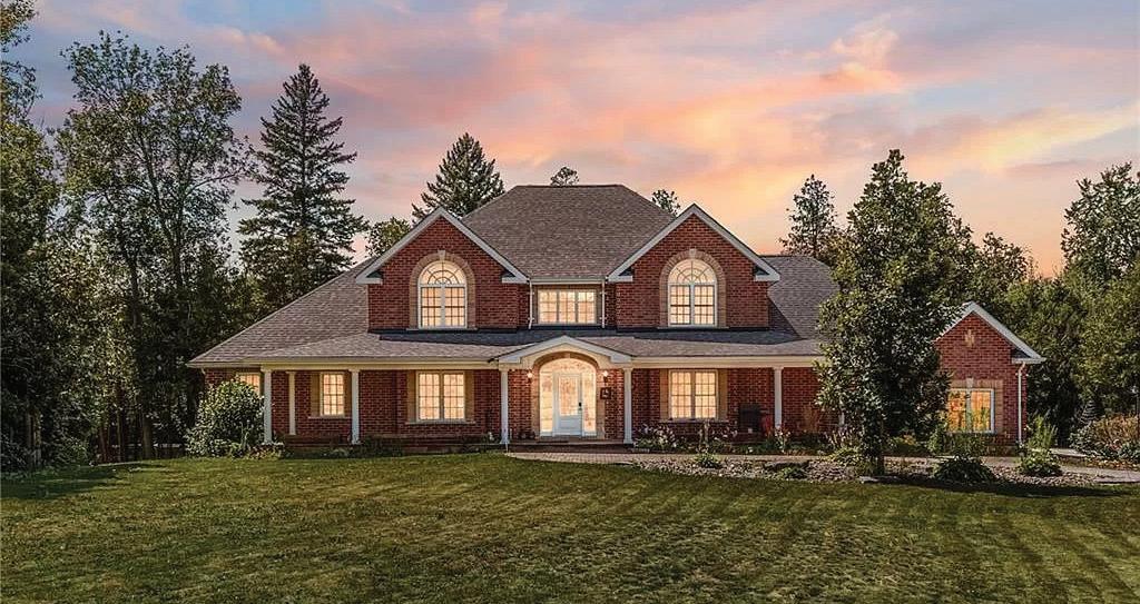 SOLID BRICK BUNGALOW on a 0.5 acre lot surrounded by multi million dollar estate homes. Country setting with close proximity to shopping, dining & entertaining you desire. Grand River is close by for nature lovers. Over 2400 sq ft on one floor with a garage transformed to a huge rec room with powder room right beside it. OPEN CONCEPT Kitchen, Dining & Living Room, 3 good size bedrooms & immense 5 piece bathroom. Large windows overlooking countryside & fruit trees amazingly blooming in spring. The super large rec room could be transformed back to an oversized double car garage or made into an in-law suite. Driveway for 8 cars. Possibilities are endless with the 132 x 165 lot.