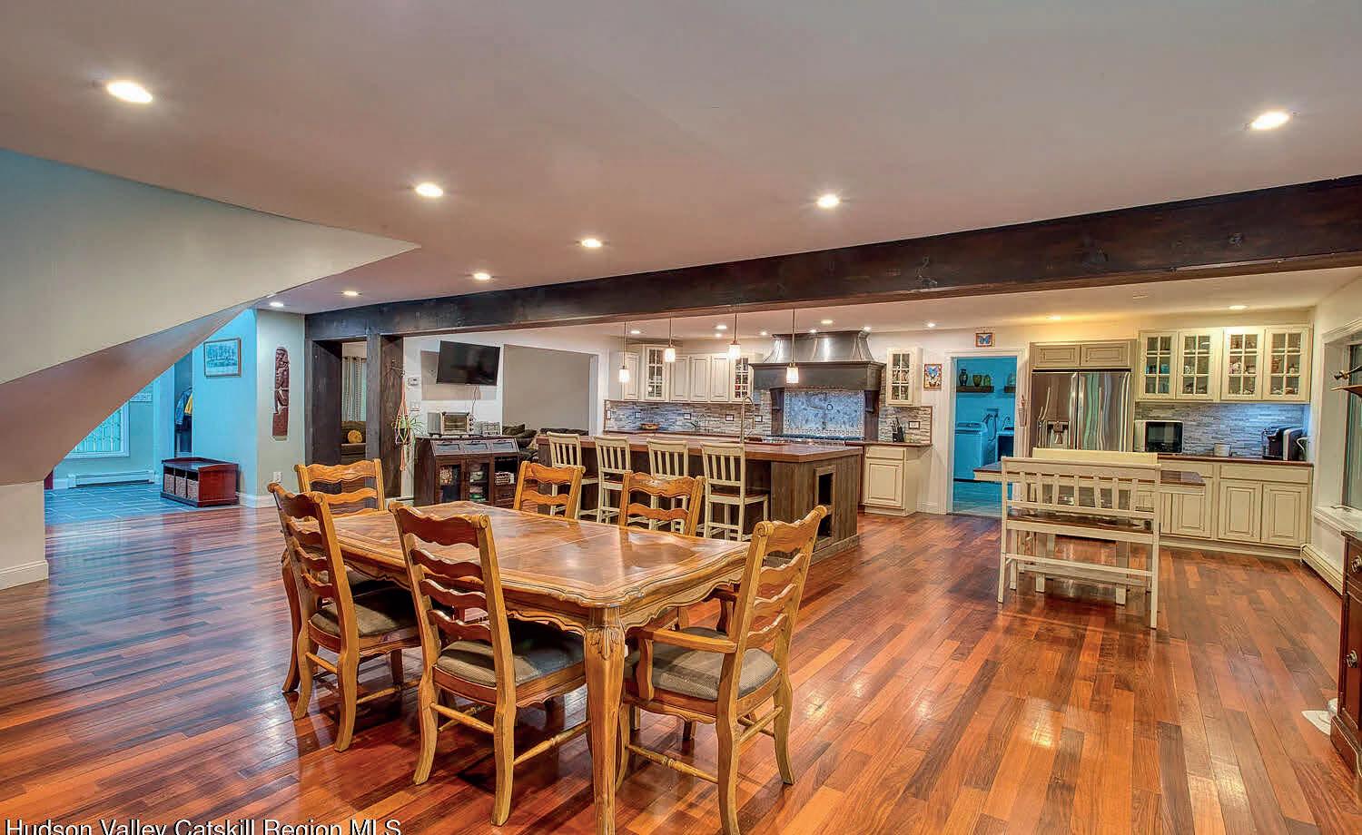 Secluded 6-Bedroom Estate with Seasonal Reservoir Views and Stunning Sunrises ! sauna, reservoir view, Woodstock, luxury kitchen, elevator shaft, accessibility and grand staircase Nestled on a quiet, picturesque road just 4 miles from the heart of Woodstock, this extraordinary 6-bedroom, 6-bathroom estate offers privacy, craftsmanship, and timeless character on nearly 2 acres of lush, serene land. Enjoy seasonal views of the Ashokan Reservoir and breathtaking sunrises that flood the home with natural light and beauty. Step inside to discover a warm and expansive interior filled with custom details. The main living area features Brazilian walnut flooring with a striking inlay of Coney Island boardwalk, while hickory wood runs throughout the upstairs and bedrooms. A unique curved staircase leads gracefully to the upper floor, where a hallway with balcony overlook adds architectural interest and airy openness. At the heart of the home is an incredible, chef-inspired kitchen—thoughtfully designed with custom-built counters and island, prep sink, pot filler, and an 8-burner stove with dual ovens. A hand-picked geode accent backsplash adds a stunning natural touch. The kitchen flows into an open-concept dining room, perfect for entertaining or cozy family meals. The Japanese-inspired master bathroom offers a true retreat, complete with a heated bench, sauna, and elegant spa-like finishes. This home is also designed with accessibility in mind, featuring wide doorways, a ramp for entry, and a built-in elevator shaft that connects the basement, main floor, and second story—making it ideal for multi-generational living or future adaptation. MLS #20253346