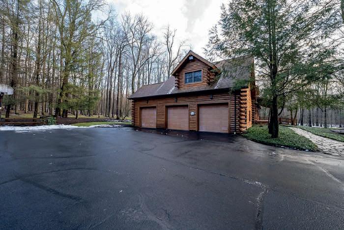 We are is pleased to present a special retreat to luxury and serenity in this 4,933 square foot one-of-a-kind custom built log home estate. Rarely do you find a property of this caliber with the additional desirable attribute of a prime location. Secluded privately in the hills near the popular Peek N Peak ski, golf and water sports resort, this property is the ultimate vacation destination or a forever home hide-a-way. 64.9 acres surrounds you with hardwoods, a 3.9 acre park-like yard, a stocked pond, and a home where wildlife abounds. Just minutes to Findley & Chautauqua Lake, the Chautauqua Institution and WNY wine country, outdoor enthusiasts will have additional recreational opportunities to enjoy in the near neighborhood of many Western New York relaxing destinations. This three level home boasts four bedrooms and three and a half bathrooms, comprising of a 2136 sqft main level, a 900 sqft upper level, and a bonus of 1897 sqft. of a finished lower-level basement for additional living space. A six car garage is attached for parking convenience and storage. If home entertainment and barbecue afternoons are in your plans, a 2,200 sq.ft. multi-level deck is part of this home and large enough for the biggest family or social gatherings under the shady trees. The deck also features a built-in hot tub. The pond is stocked with bass and other species of fish with a dock and shore side pavilion. Proximate to the custom-built home is a two story 7,000 sqft heated barn for more vehicles, more storage, recreational vehicles, and could easily be expanded for more living space for a second guest home in the popular barndominium style construction.