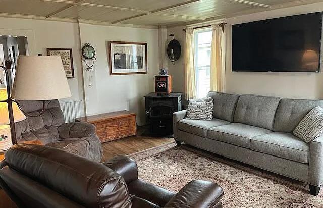 This 3-bedroom, 2-bath single-family home offers 1,440 square feet of character-filled living space, thoughtfully updated to blend modern comfort with timeless charm. Original wide-plank hardwood floors run throughout, paired with an open, updated kitchen featuring granite countertops, high-end stainless steel appliances, and a cozy wood stove for winter warmth. A sun-drenched laundry room with newer appliances adds functionality, while electric baseboard heat with room-by-room thermostats provides efficient control.