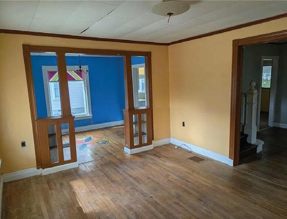 3 BEDS • 2 BATHS • 1,832 SQFT • $99,900 Spacious Victorian home in Moravia village featuring high ceilings, flexible living areas, wraparound porch, and many original details. Hardwood floors, first-floor bath with shower and laundry, bonus room with side entrance, and an enclosed back porch leading to a low-maintenance backyard. The kitchen offers ample renovation potential. Upstairs includes three large bedrooms, one with an attached bay-windowed room, plus an oversized full bath. Ideal for buyers seeking affordability or investment opportunity; needs some TLC to restore its original charm.