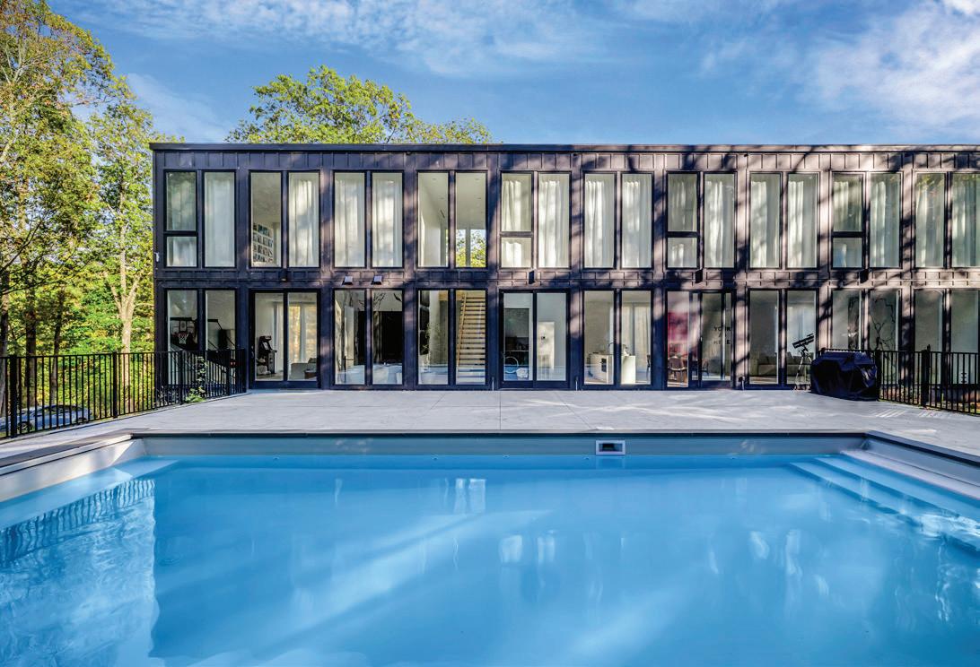 Completed in 2025 and sculpted into a landscape of dramatic natural rock formations, this architecturally significant modern residence offers the rare experience of total privacy paired with refined, design-forward living. Every element of this 3,564 sq ft home has been curated to deliver serenity, sophistication, and effortless luxury. The great room unfolds beneath 10-foot ceilings, framed by an entire wall of floor-toceiling glass that blurs the line between indoors and out. At its center, Porcelanosa-tiled wood-burning fireplace anchors the space with sculptural presence. The chef’s kitchen elevates daily life with custom cabinetry, a waterfall island, GE Café 6-burner gas range, double wall ovens, and integrated Bertazzoni appliances. The home features four private ensuite bedrooms, each crafted with spa-level materials. Bathrooms envelop you in Porcelanosa porcelain finishes, radiant heated floors, and refined fixtures—creating a quiet luxury experience throughout. A dedicated wellness wing includes a first-floor gym and a custom panoramic sauna and full bath, forming a personal retreat that rivals boutique resorts.
