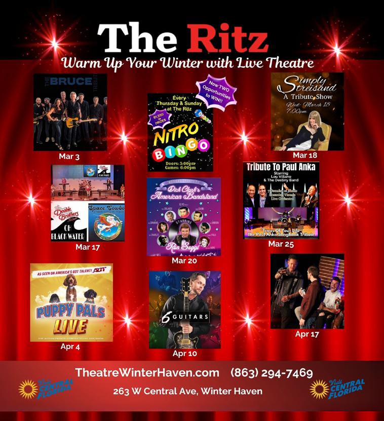 March 18, 8 p.m. at Dr. Phillips Center. Hear the voice of an icon when the one and only Queen of Motown visits Orlando with a decades-spanning career across music and film. Since her breakout success in the 1960s as the lead singer of The Supremes, the bestcharting female group in history, Diana has led an illustrious solo career. drphillipscenter.org