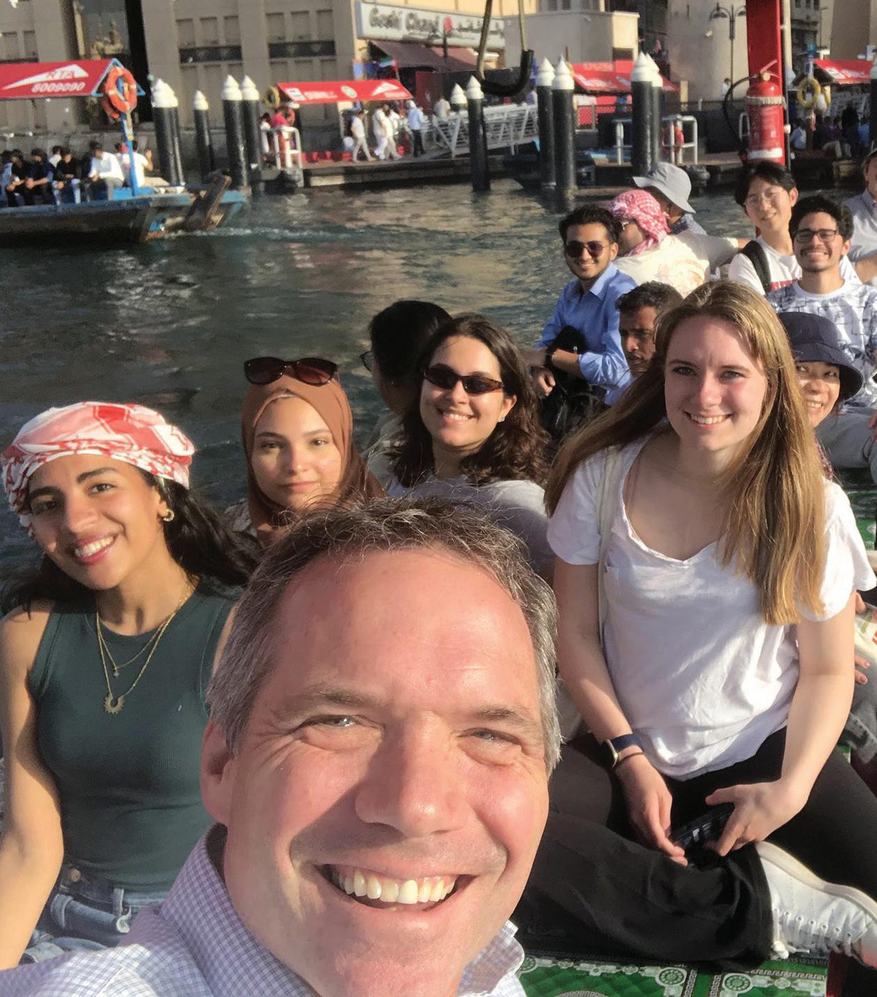 Over spring break, students, faculty, and staff built upon these virtual relationships through a travel experience funded by The Robert W. 1965 and Vivian S. Toan Fund for Engagement with Humanitarian and Middle East Issues. A delegation of 10 Haverford students, led by Executive Director of the Center for Peace and Global Citizenship (CPGC) Eric Hartman and Assistant Professor of Economics Shannon Mudd, packed their bags for a flight to Dubai.
