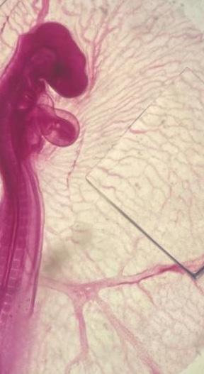 The Umbrella Pine, Sciadopitys verticillata , is a rare conifer species endemic to Japan, also planted in Haverford’s Arboretum. Called a “living fossil,” the species has been on earth for 230 million years. Imaged is a cross-section of a branch of the tree stained with toluidine blue O. The dark blue parenchyma cells in the center form the pith and the light blue region shows xylem cells, which transport water and dissolved minerals throughout the plant. Out of focus in indigo is the phloem. Together these tissues comprise the anatomy of a unique tree’s branch.
