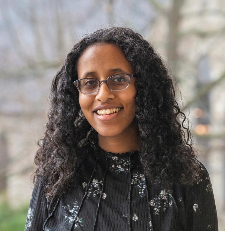 An international student from Addis Ababa, Ethiopia, Mengistu has had her eye on the heavens since fifth grade— despite some early hesitation about an assignment on black holes. “I really don’t want to do this,” the physics and astronomy double major recalls telling her teacher, who gently countered that she might actually like it. “And I absolutely did enjoy it.” That early engagement led her to the Ethiopian Space Science Society in high school, where she helped build and launch a CubeSat, a miniature fourinch satellite.