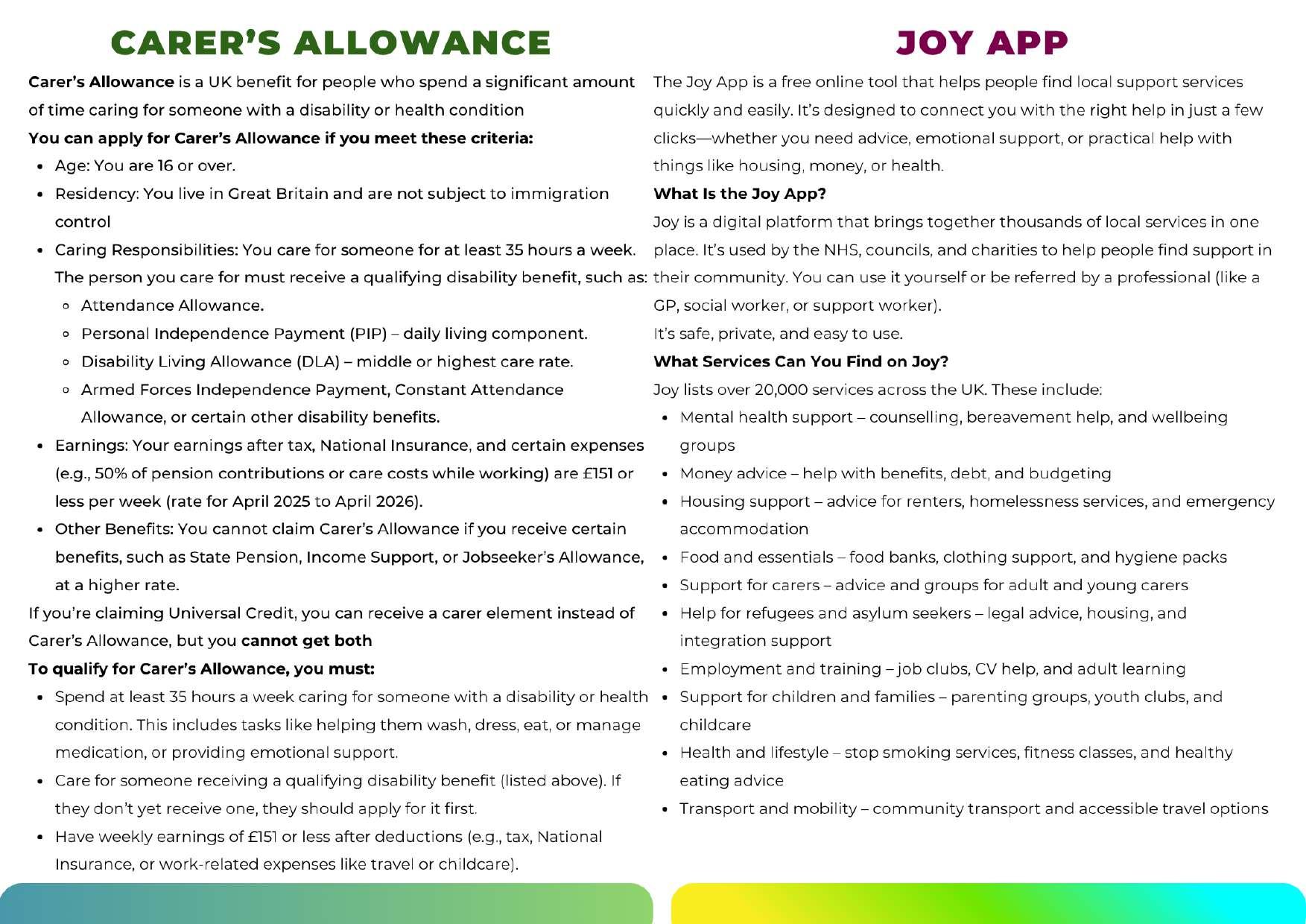 The Joy App is a free on line tool that helps people find local support services quickly and easily. It’s designed to connect you with the right help in just a few clicks-whether you need advice, emotional support, or practical help with things like housing, money, or health.