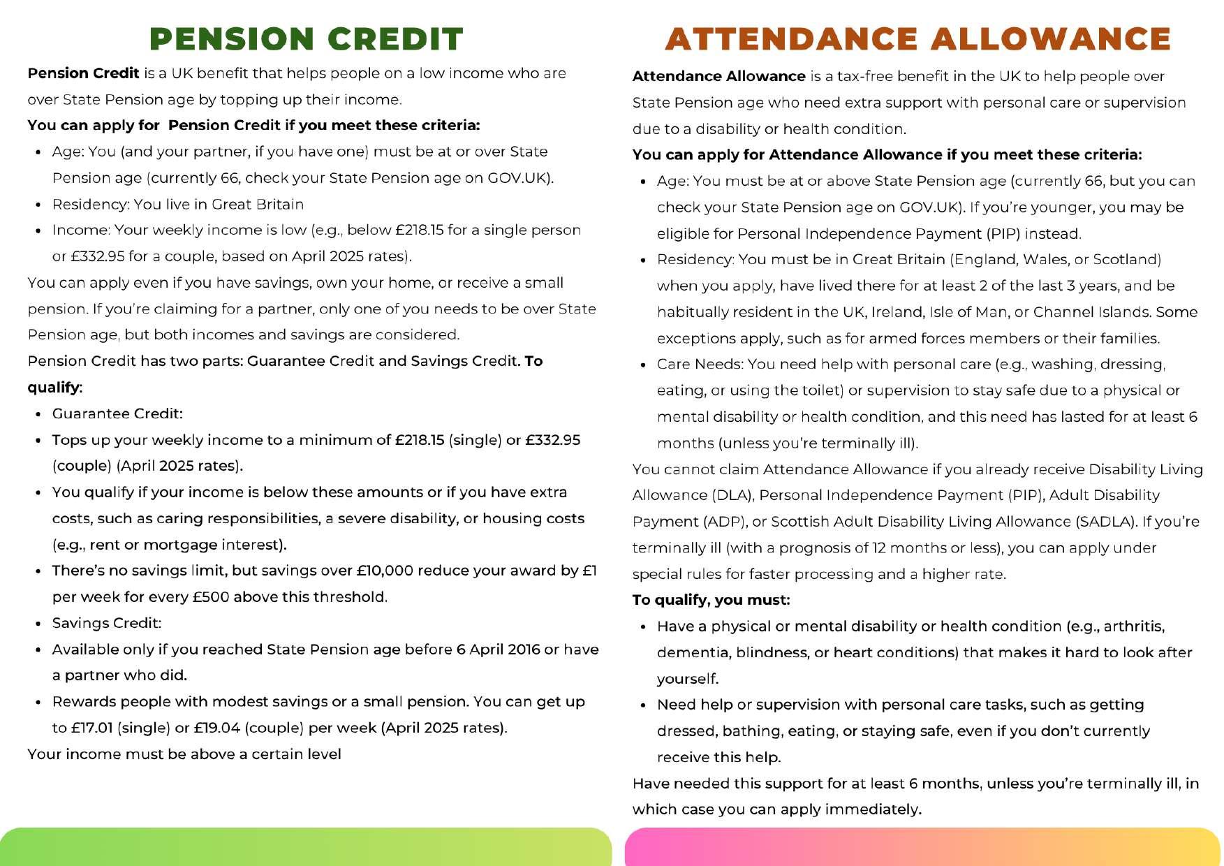 • Attendance Allowance.