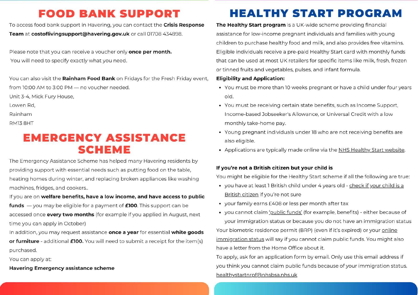 Cost of Living Team (Havering Council): 01708 432 280