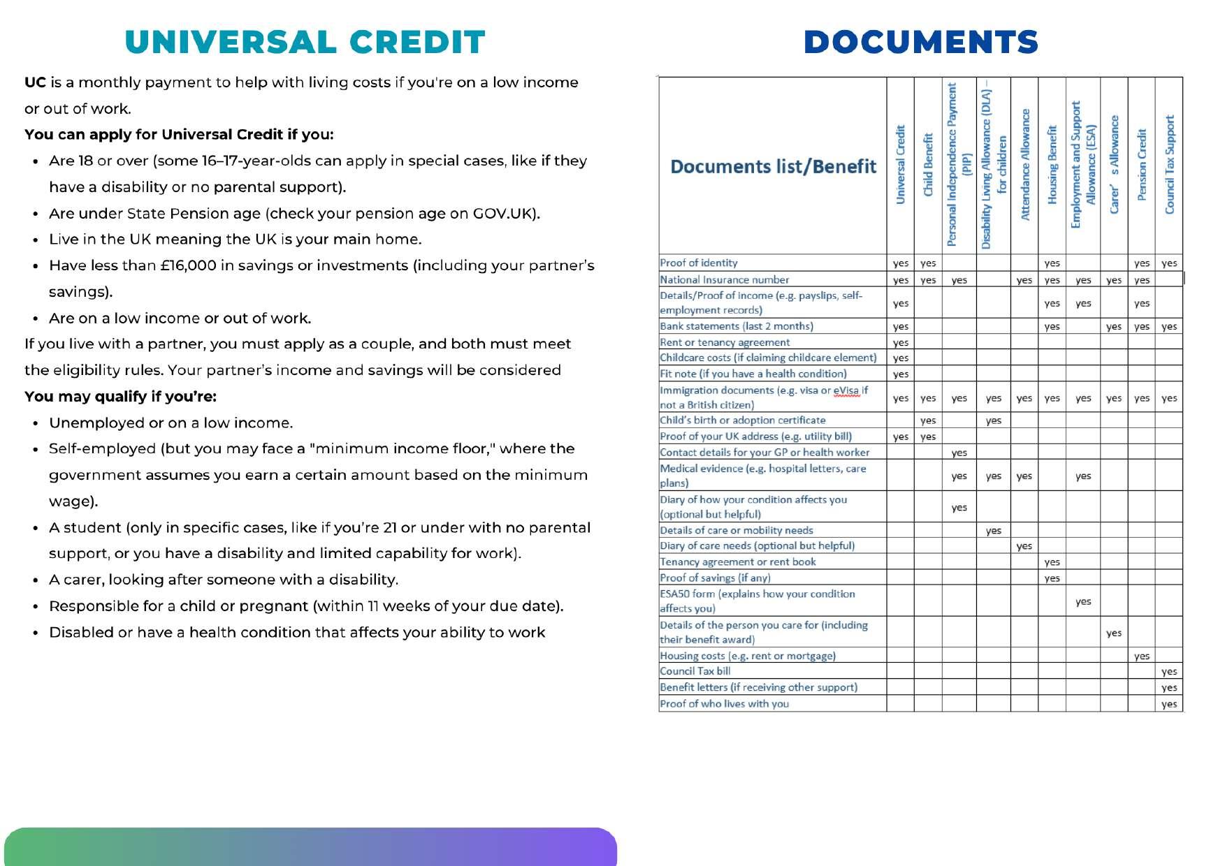 • EU, EEA, or Swiss Citizens: Must have settled or pre-settled status under the EU Settlement Scheme to claim. You’ll need an eVisa to prove your status.