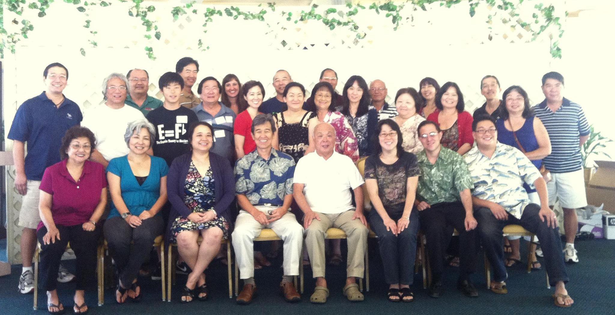 Back row, from left: Derek Loui, Robert Young, Jim Araki, Cody Onishi, Lance Uchida, Les Murata, Meredith Prescott, Mel Uchida, Gary Hirokane, Susan Hirokane, Wanda Murata, David Yee, Elizabeth Coraggio, Gary Todoki, Janet Morita, Karen Fujimoto, Ann Doike, Tom Shigeta, Ruth Young, Ivan Morita